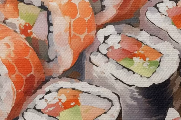 Immagine Sushi su un piatto, acquerello, floreale, giapponese Nr r41179