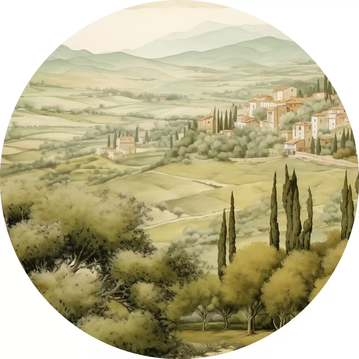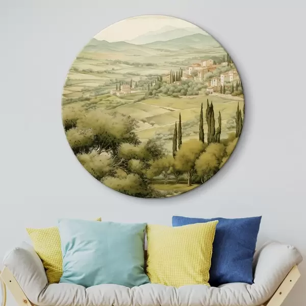 Quadri rotondi Paesaggi toscani, acquerello, stile boho r41220