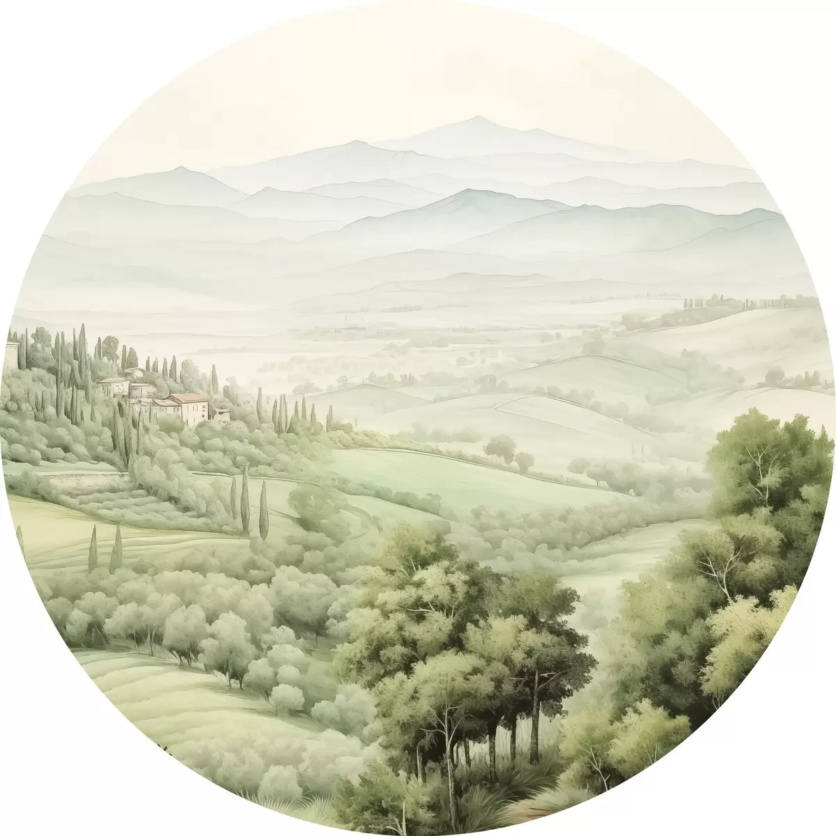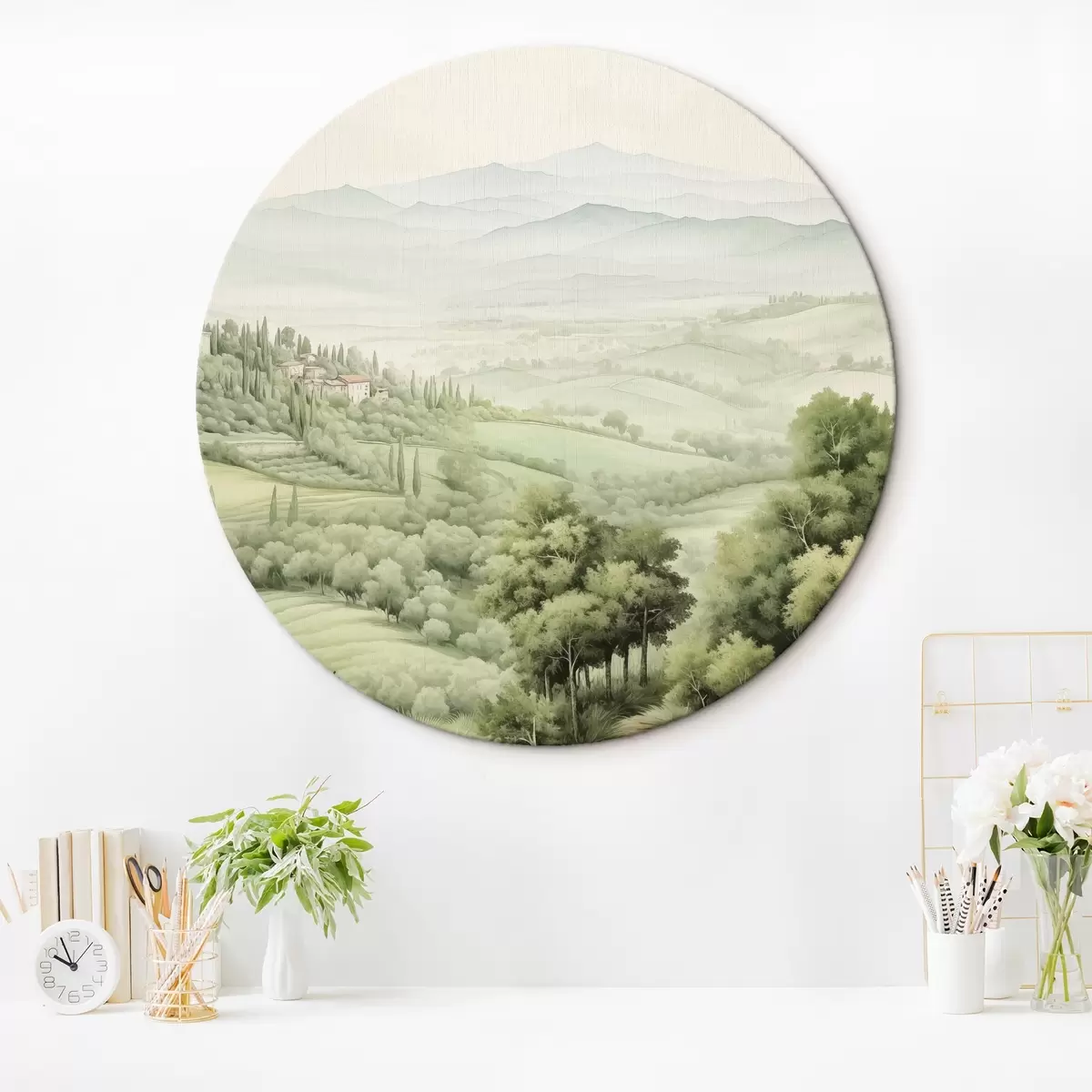 Quadri rotondi Bellissimi paesaggi ad acquerello, rustici, estivi r41221