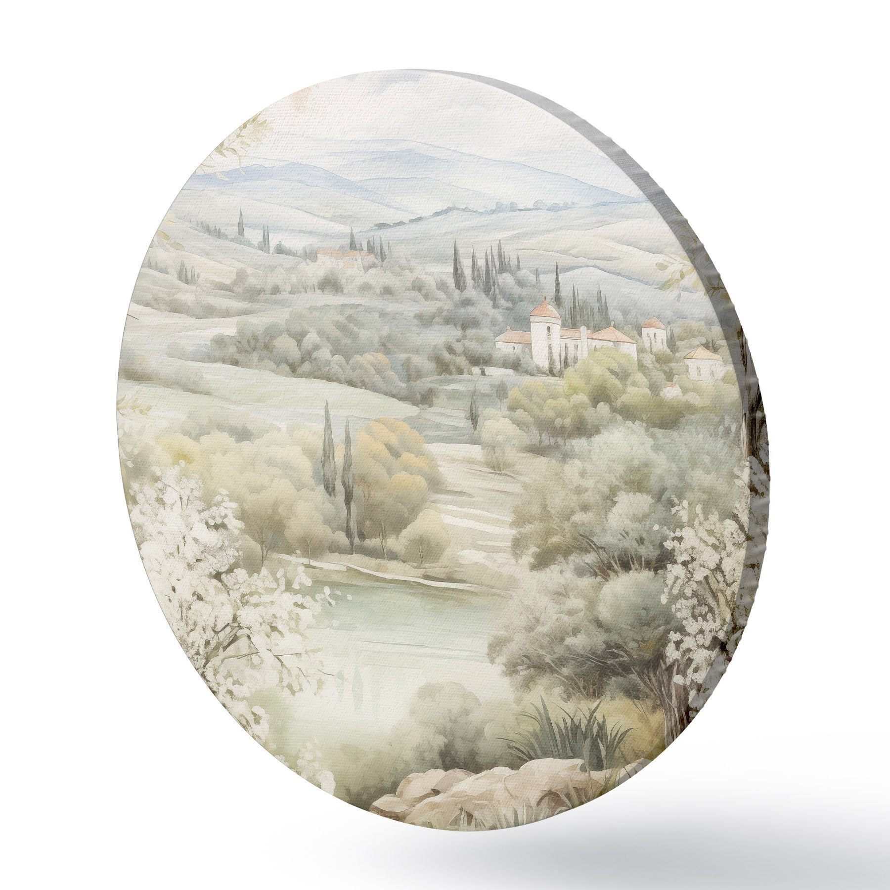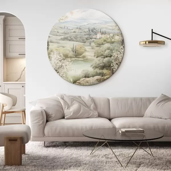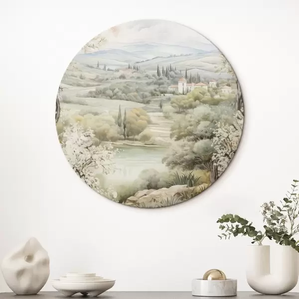 Quadri rotondi Natura in fiore, colori tenui ad acquerello, alberi e fiori, lago r41224