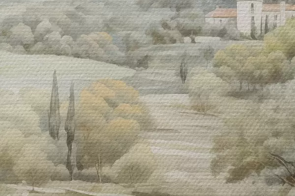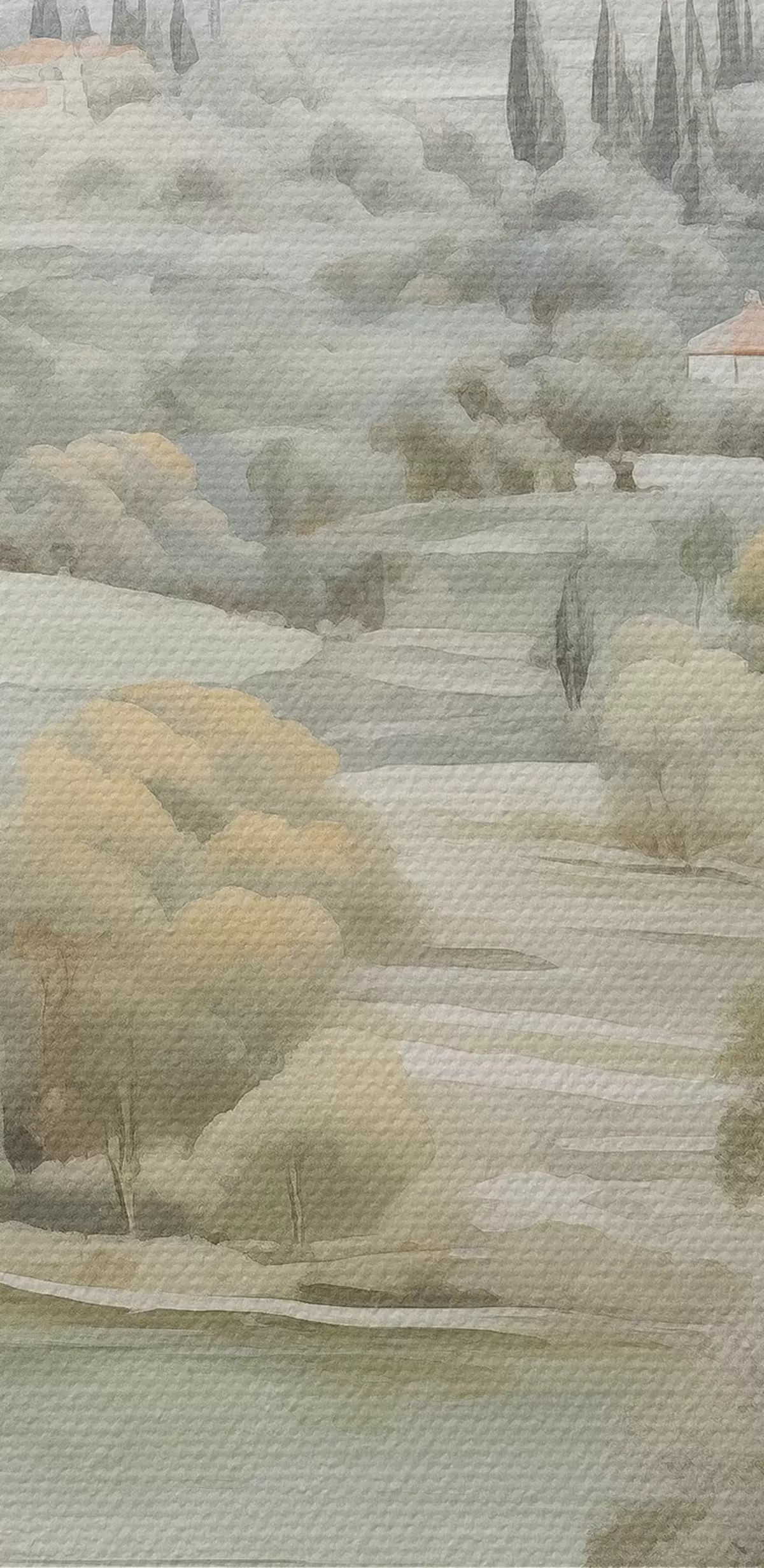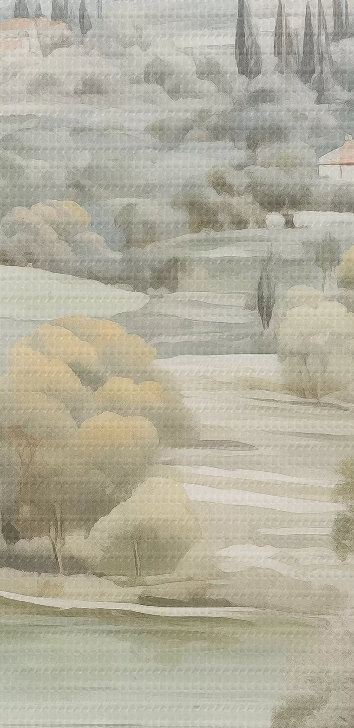 Immagine Natura in fiore, colori tenui ad acquerello, alberi e fiori, lago Nr r41224