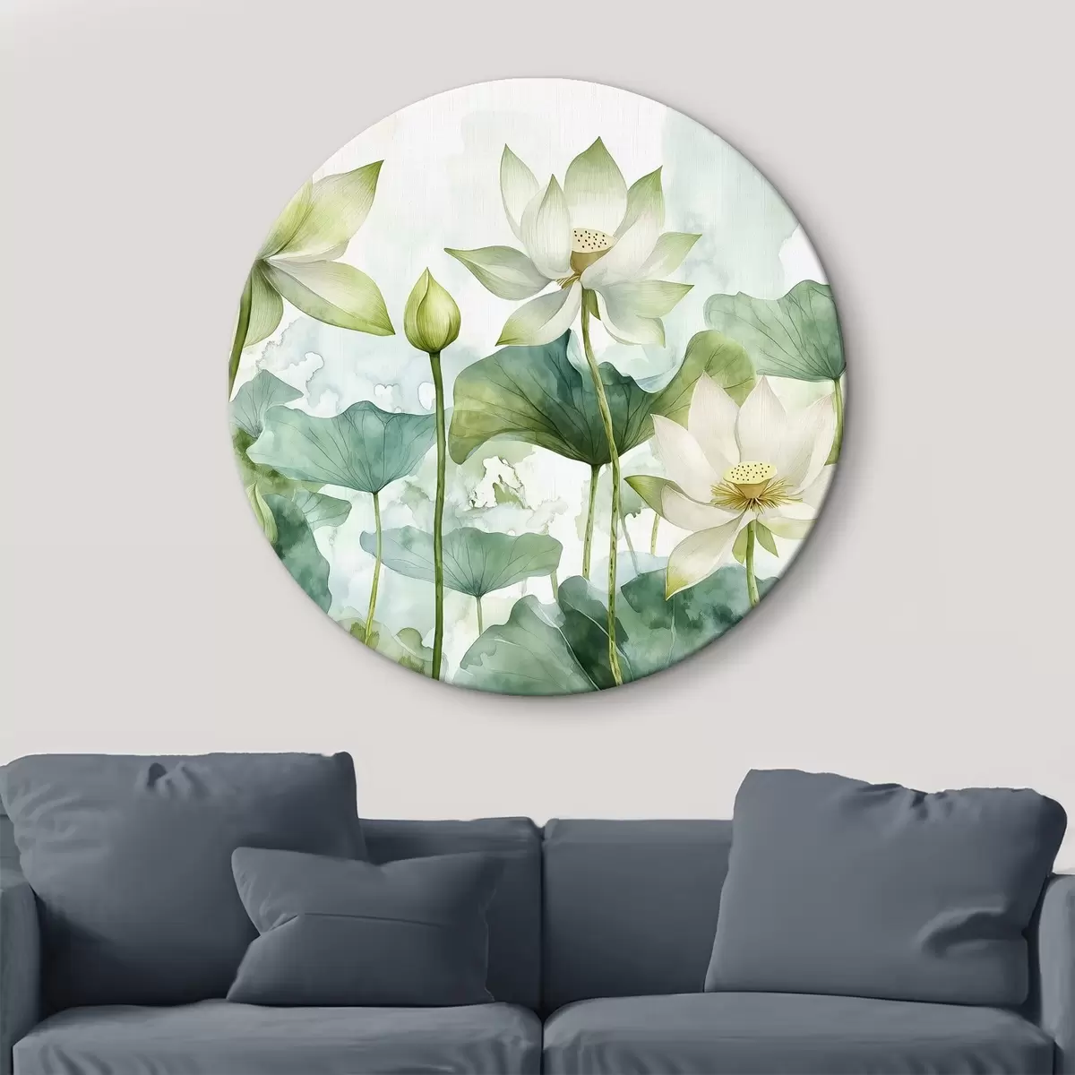 Quadri rotondi Loti acquerellati, vegetazione lussureggiante r41226