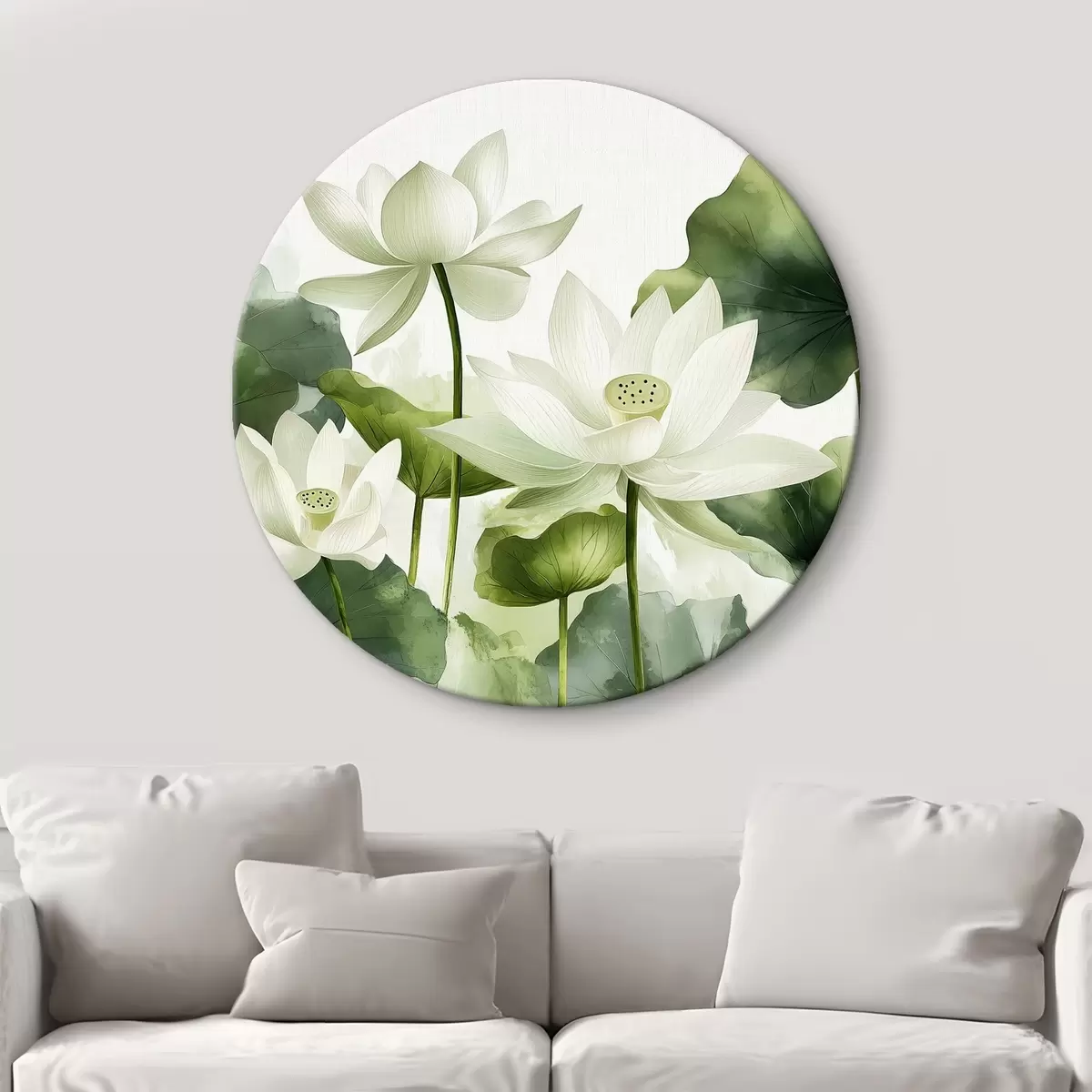 Quadri rotondi Bellissimi fiori di loto acquerellati r41227