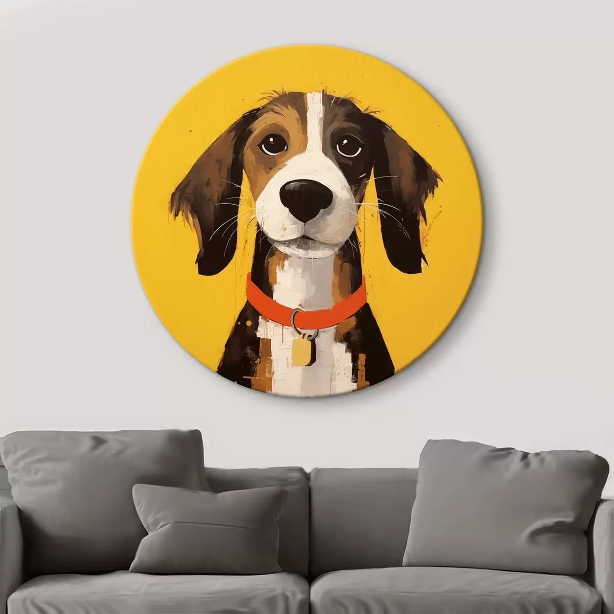 Quadri rotondi Ritratto di cane su sfondo giallo r41232