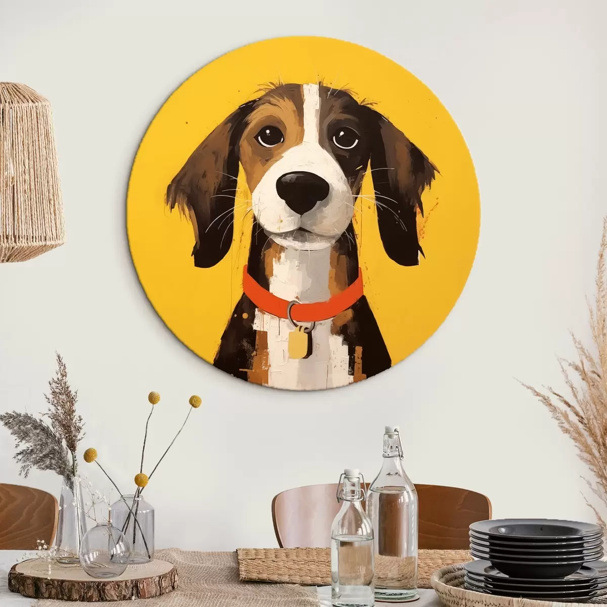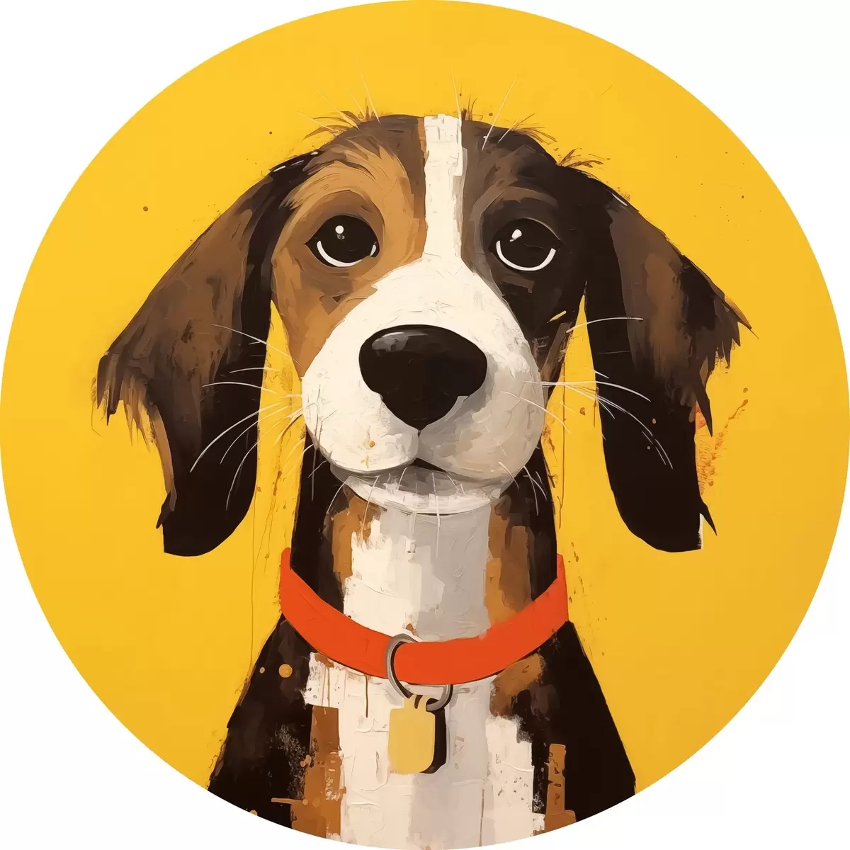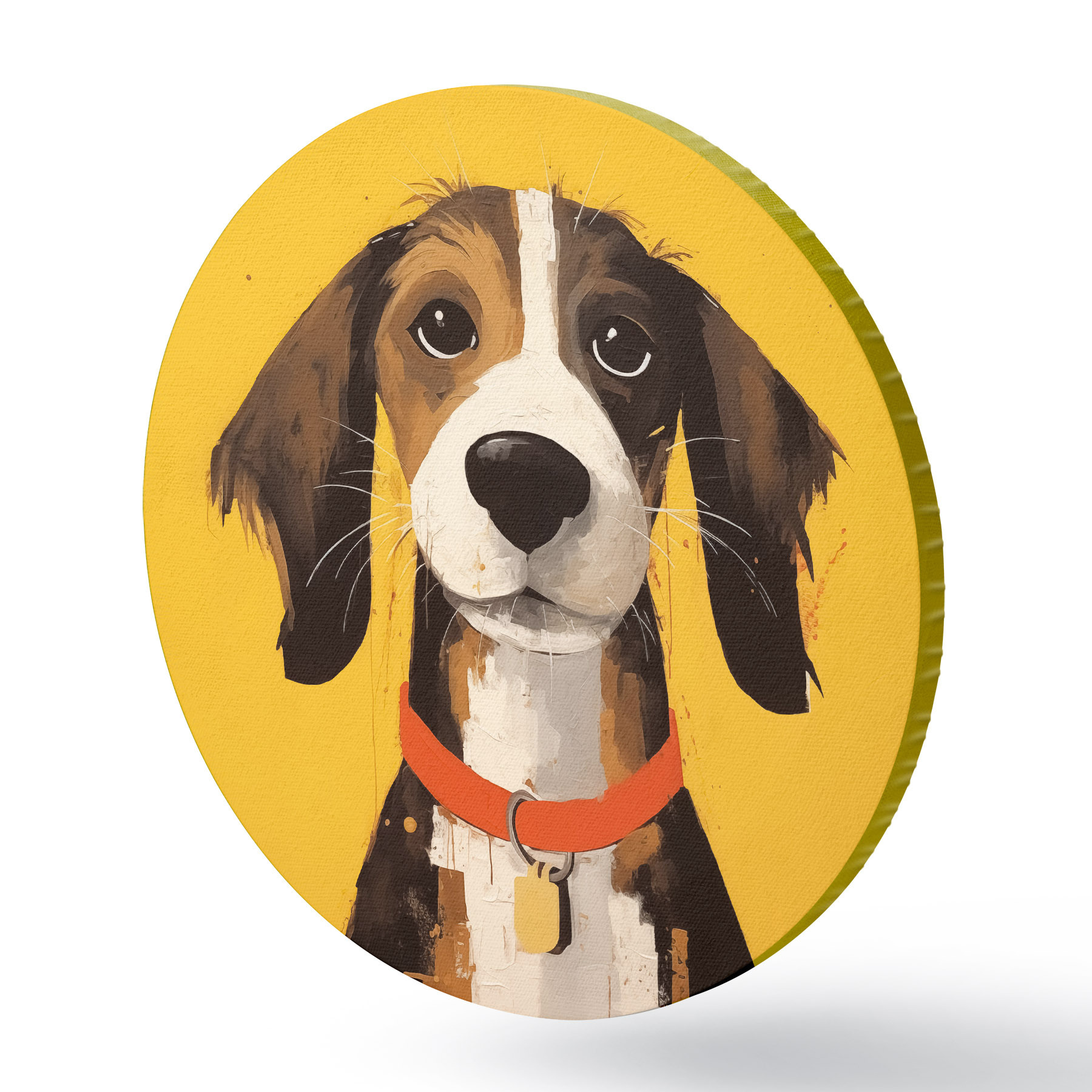 Quadri rotondi Ritratto di cane su sfondo giallo r41232