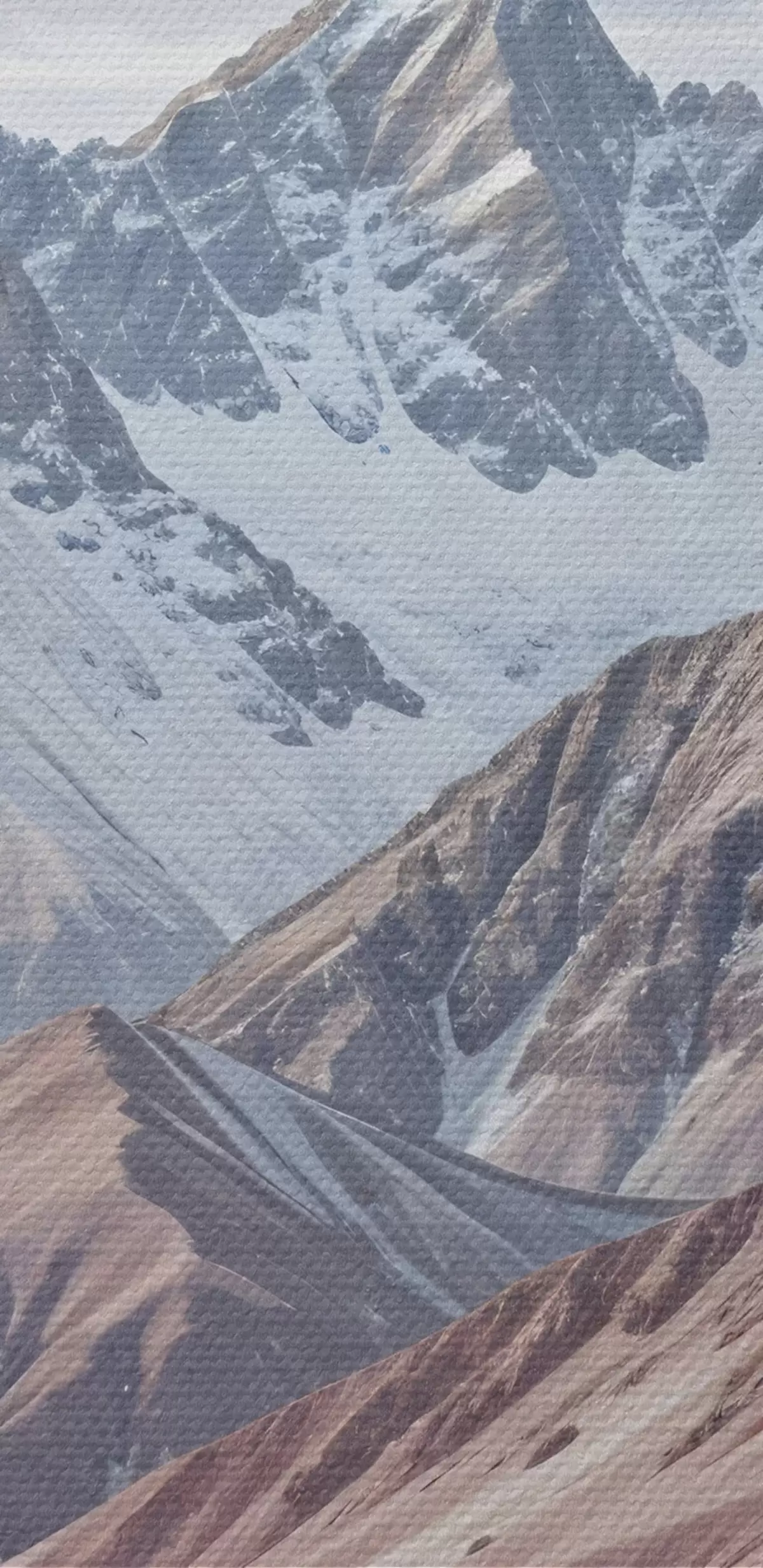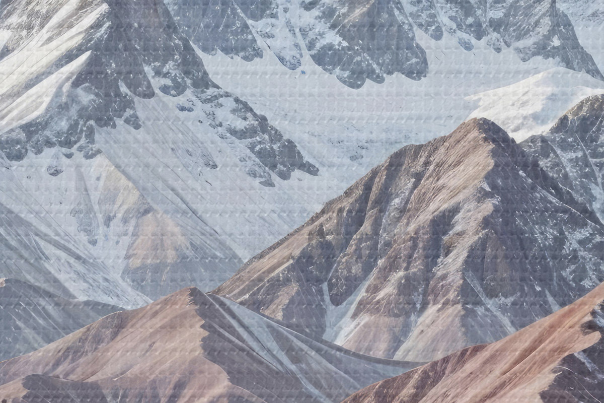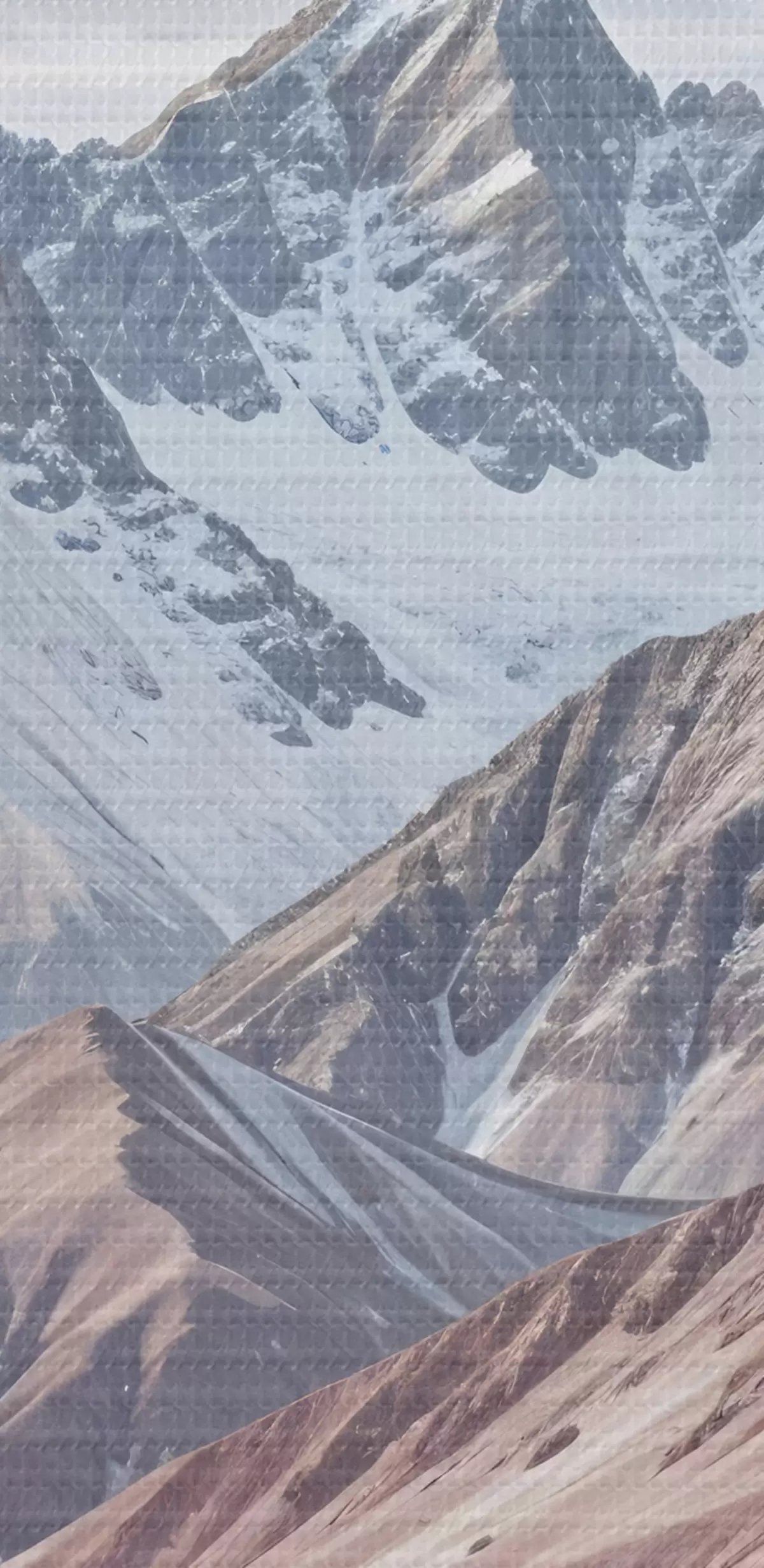 Immagine Montagne aspre e innevate con un fiume tortuoso che scorre in un paesaggio vasto e colorato Nr r41262