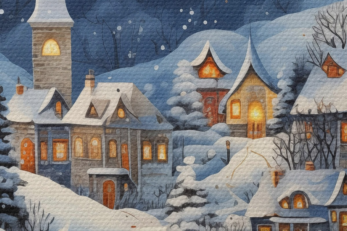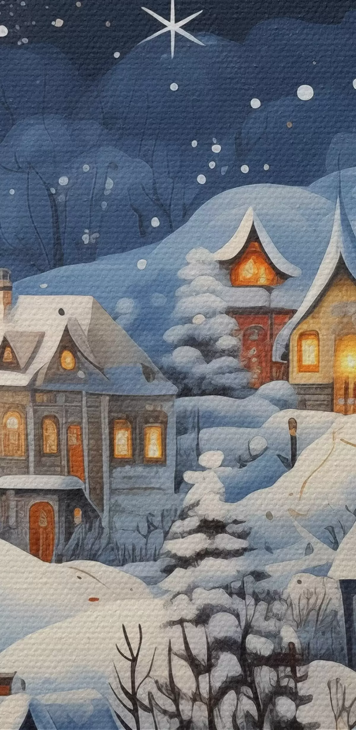 Immagine Paesaggio invernale con case di campagna innevate sullo sfondo del cielo notturno stellato Nr r41275