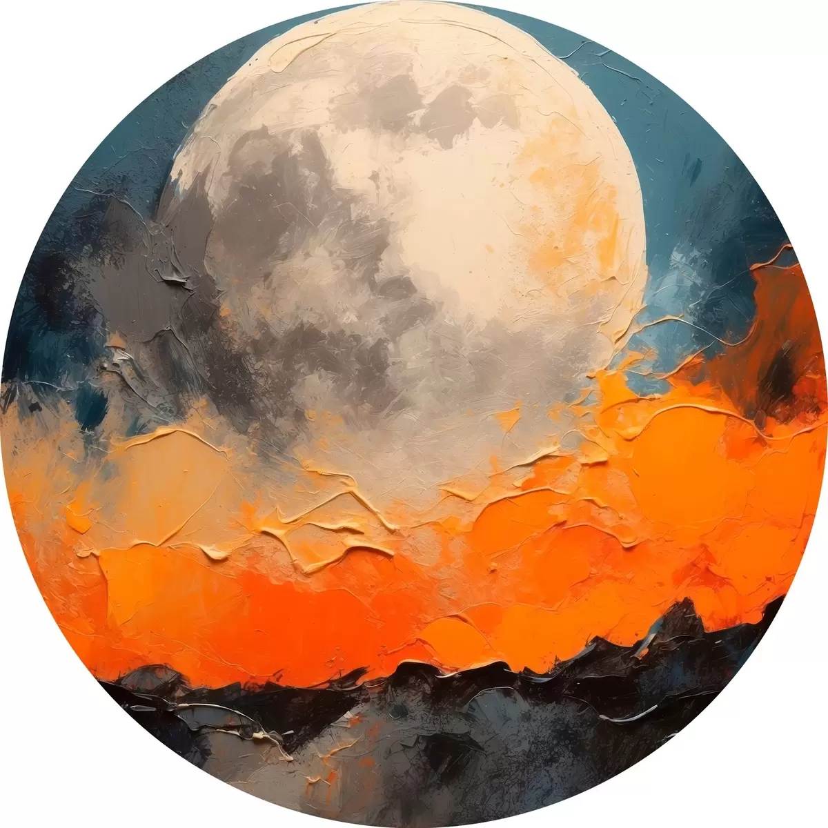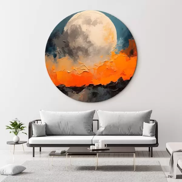 Quadri rotondi Pittura ad olio astratta con la luna r41286