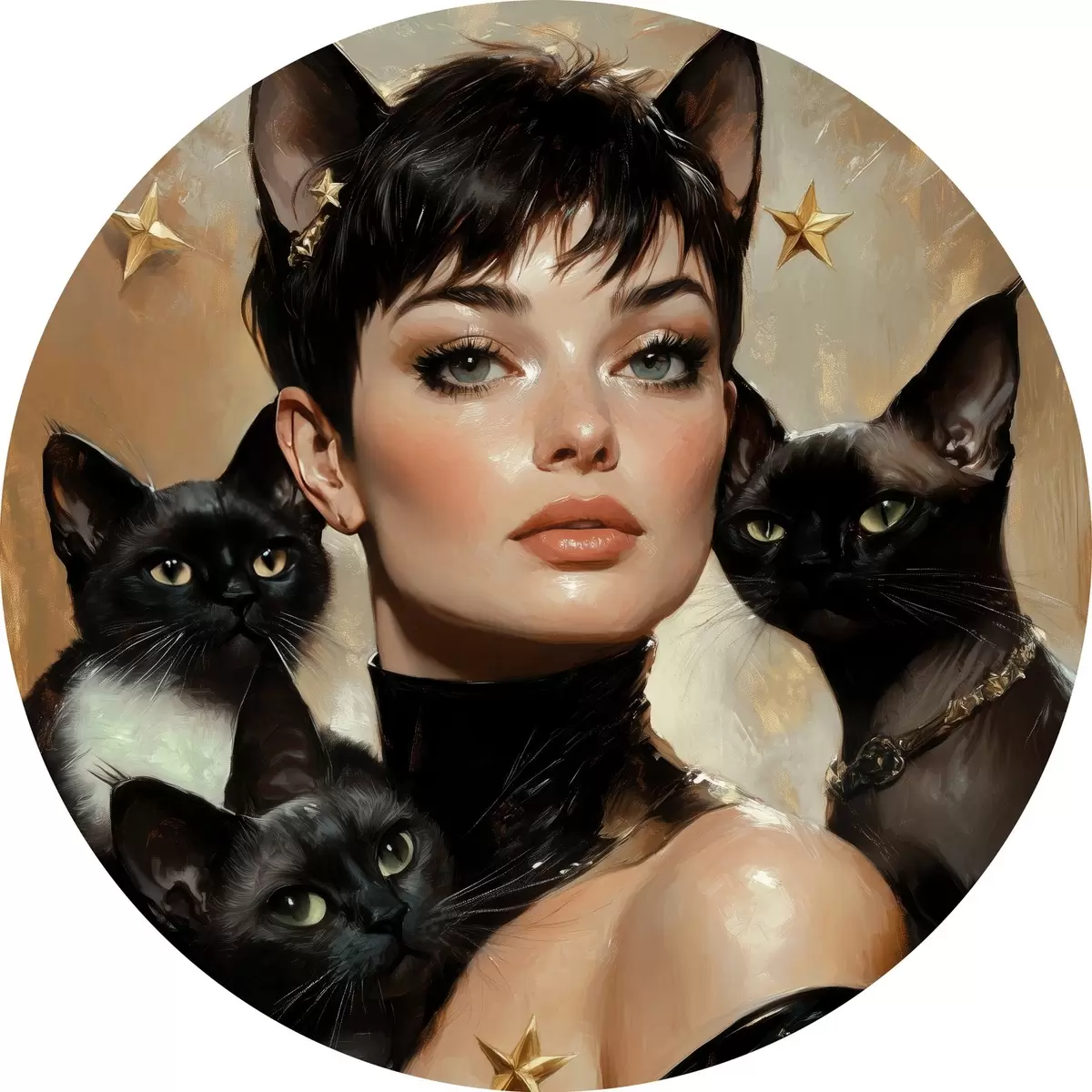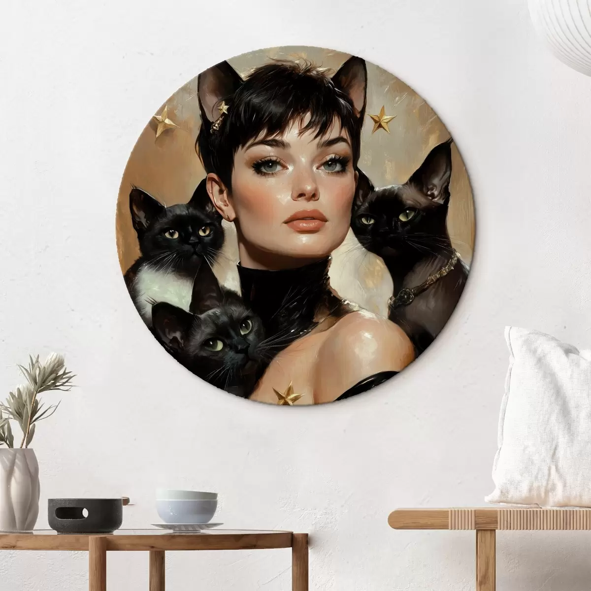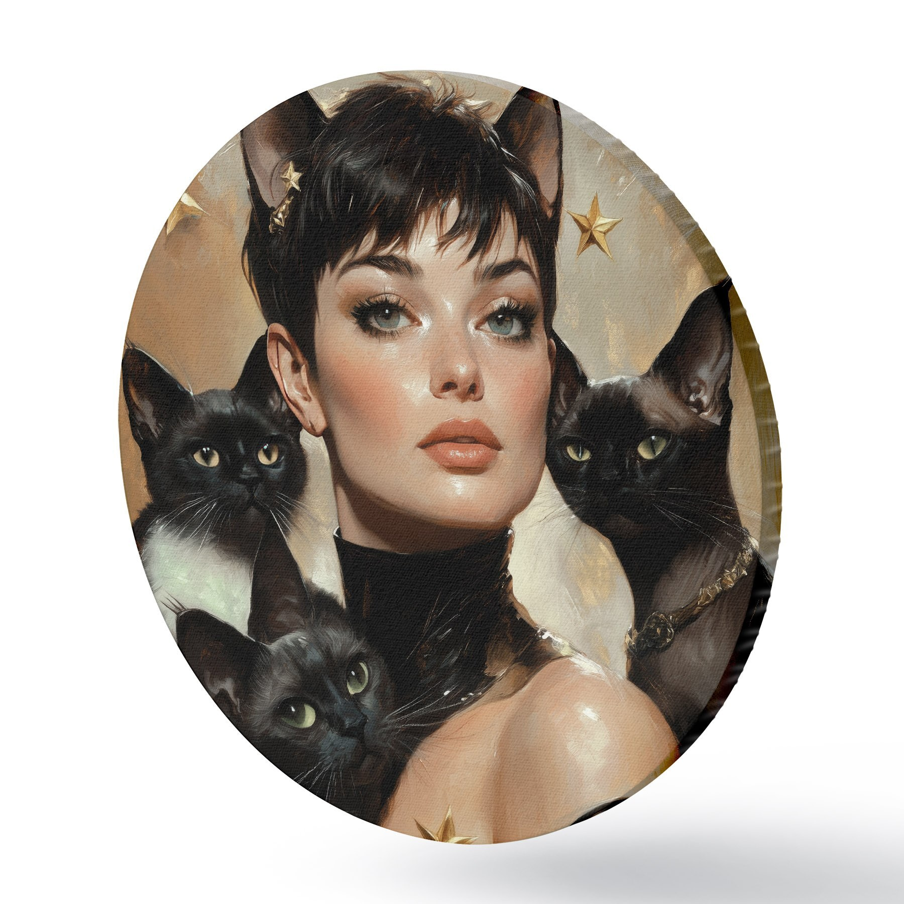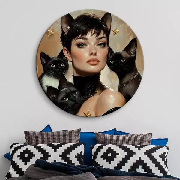 Quadri rotondi Ragazza gatto con gatti neri r41344