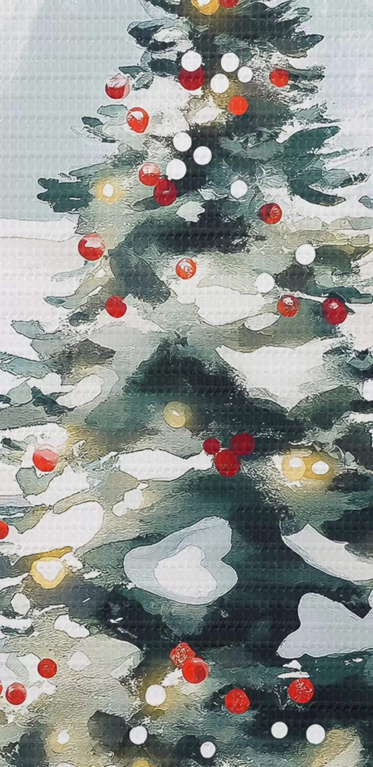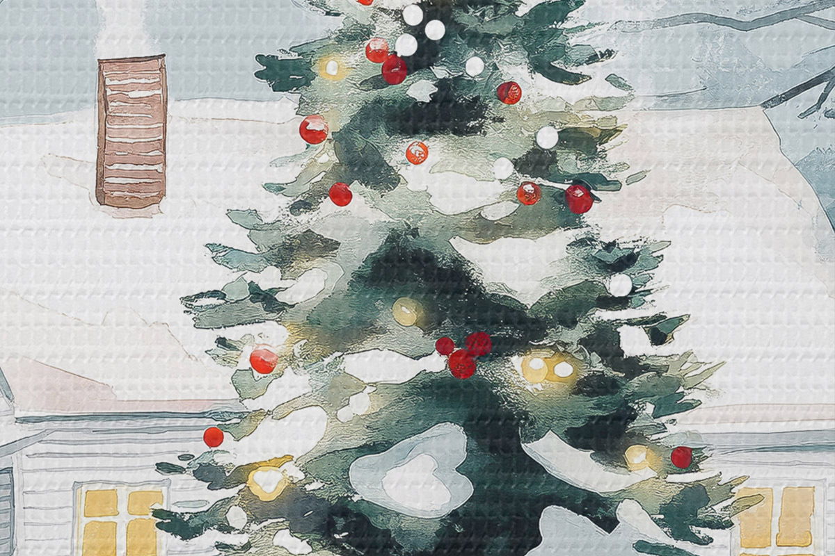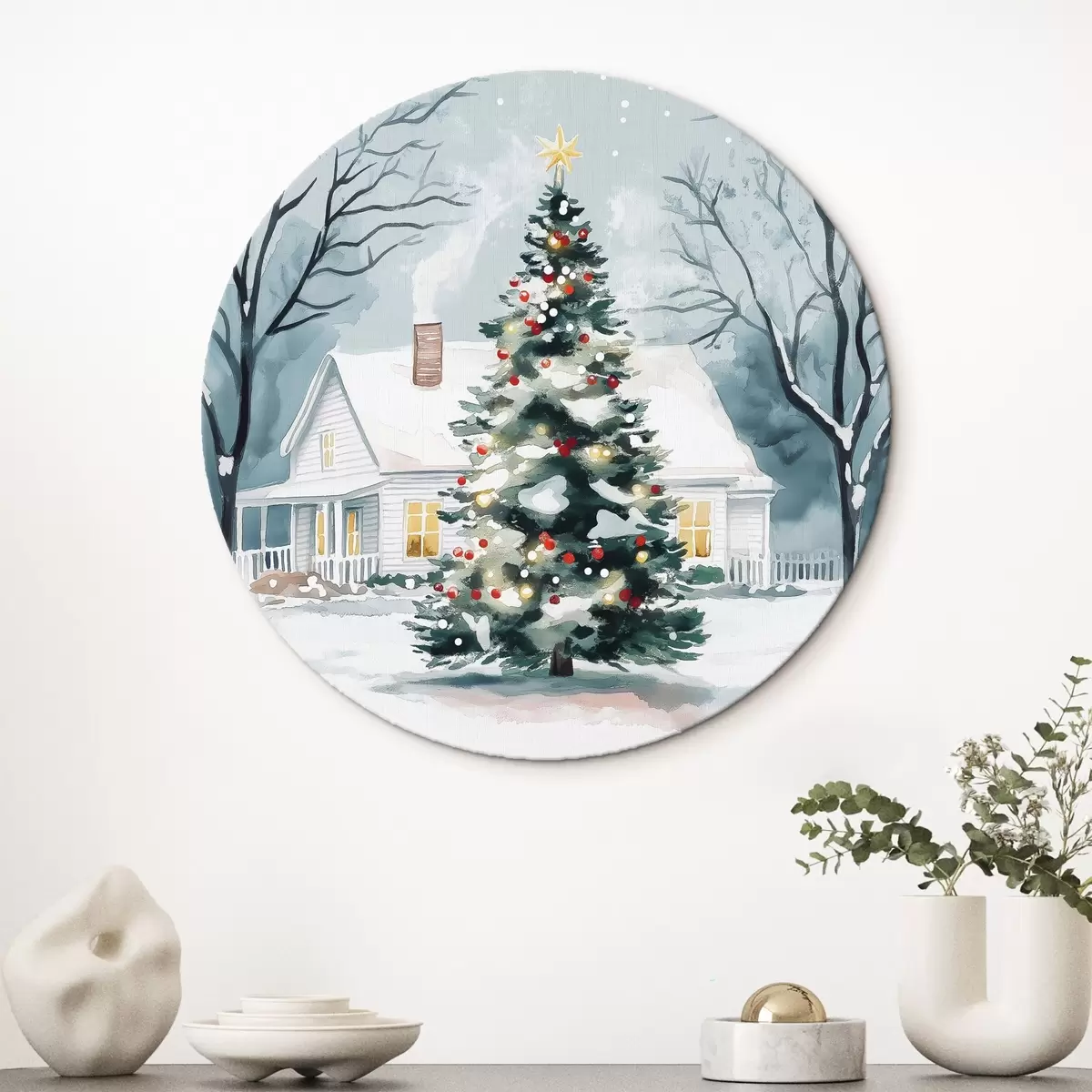 Quadri rotondi Città invernale, pino decorato, Natale, acquerello r41364
