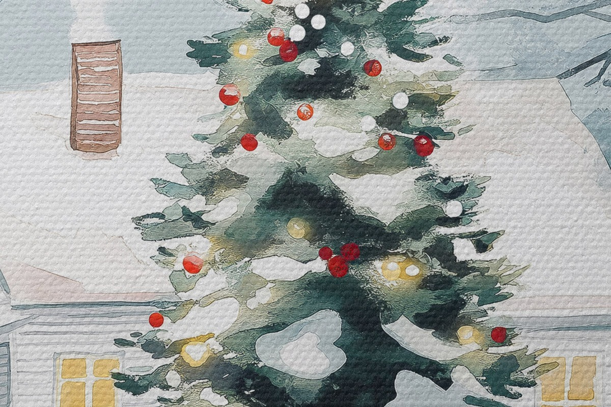 Immagine Città invernale, pino decorato, Natale, acquerello Nr r41364
