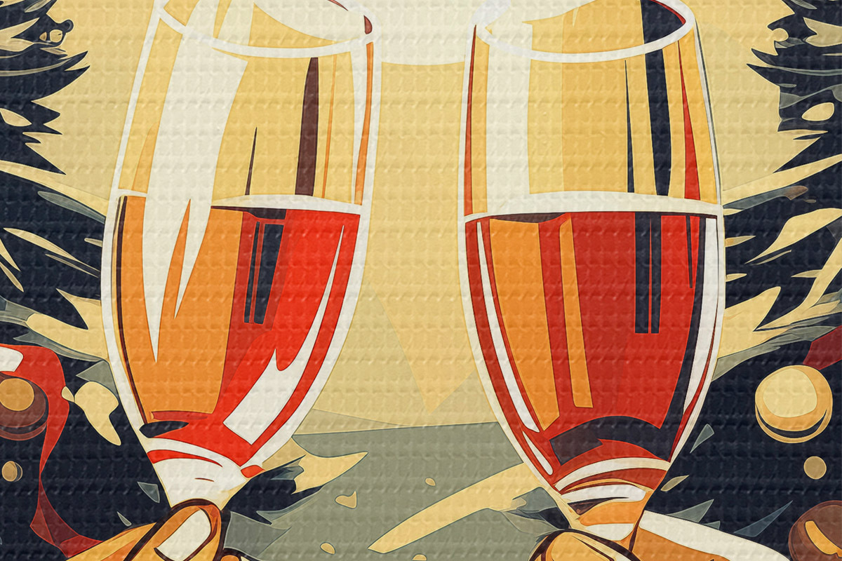 Immagine Bicchieri con champagne, Natale, Capodanno, astrazione, pop art, alberi di pino Nr r41374