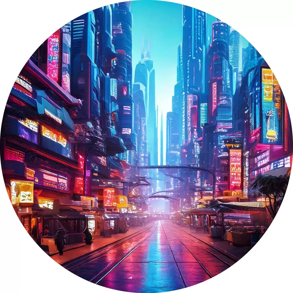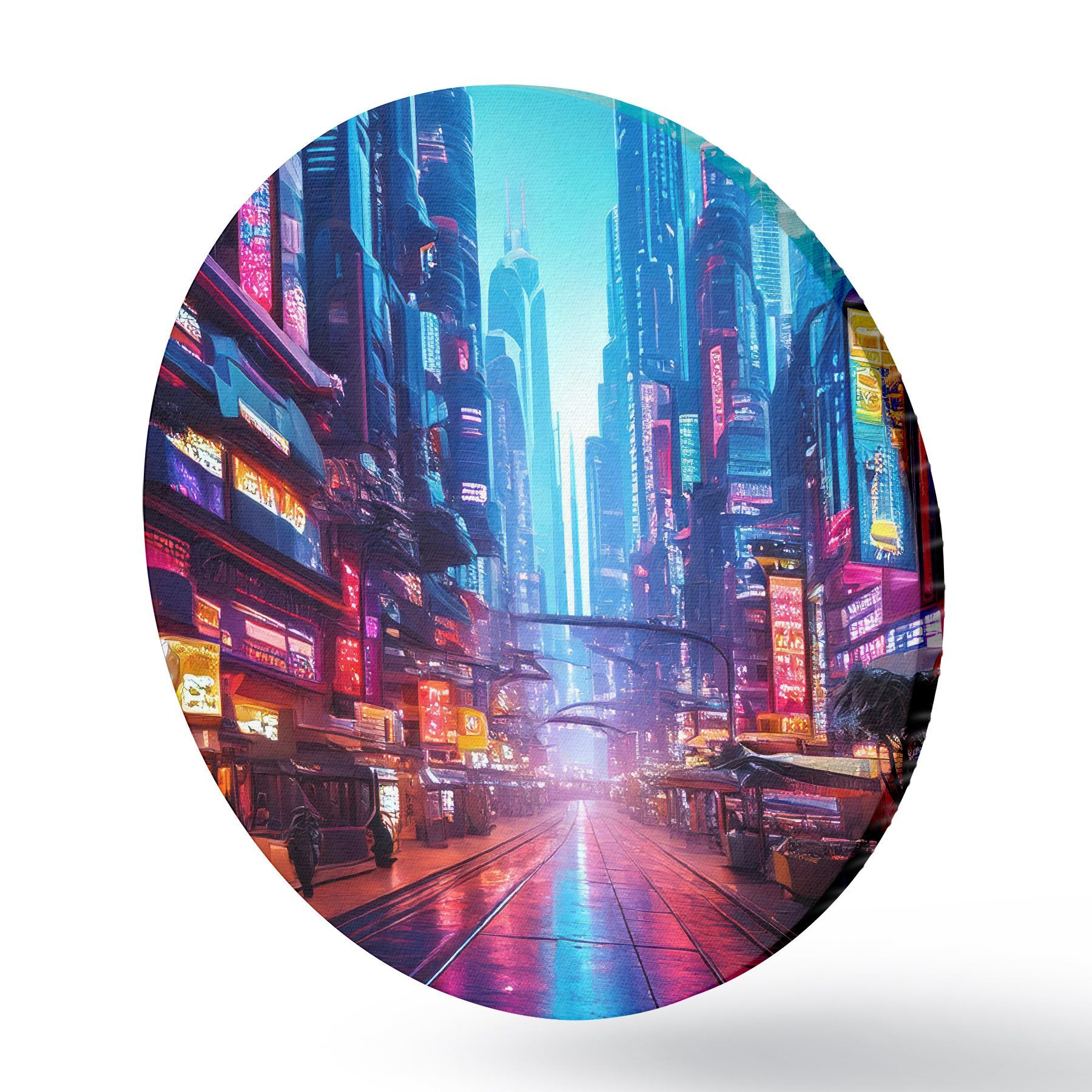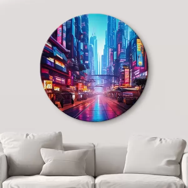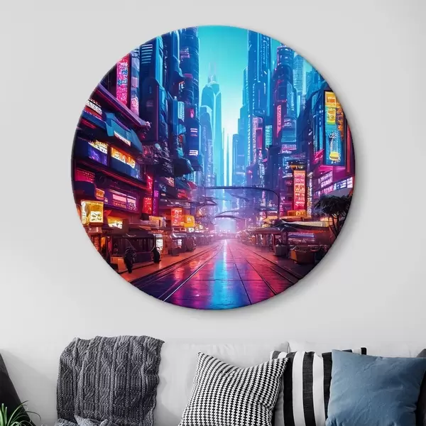 Quadri rotondi città notturna futuristica r41410
