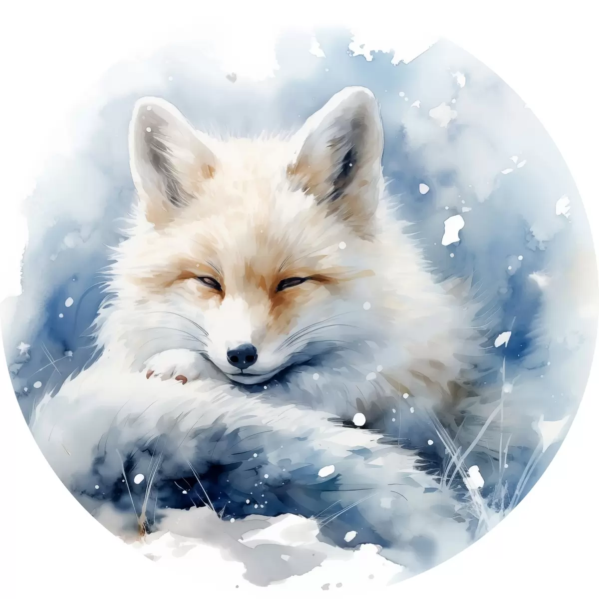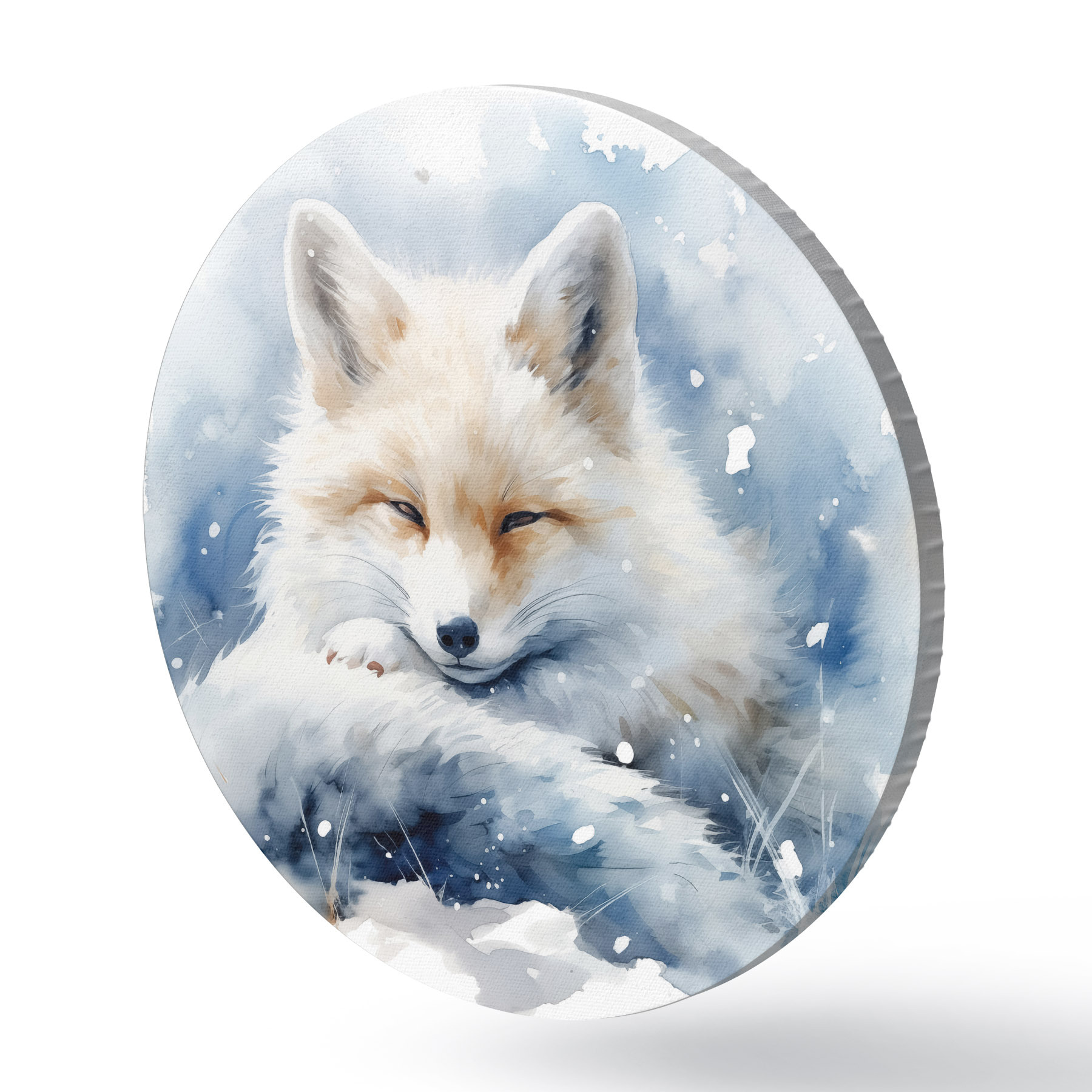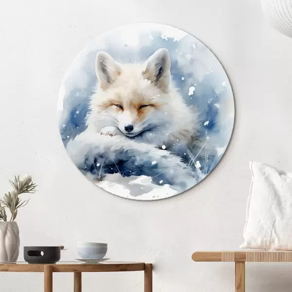 Quadri rotondi Volpe nella neve imitazione acquerello illustrazione r41436
