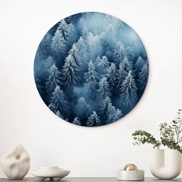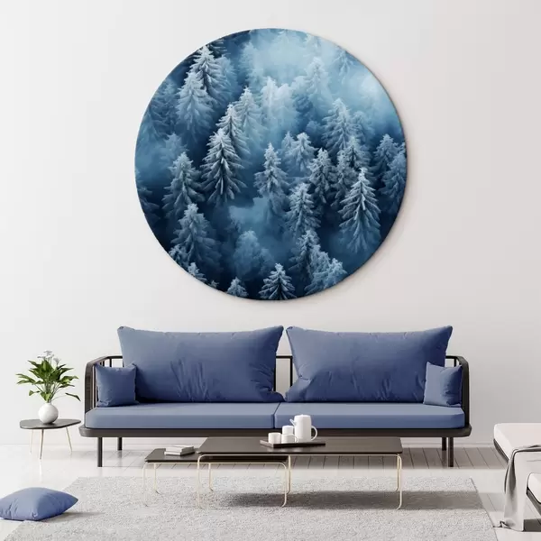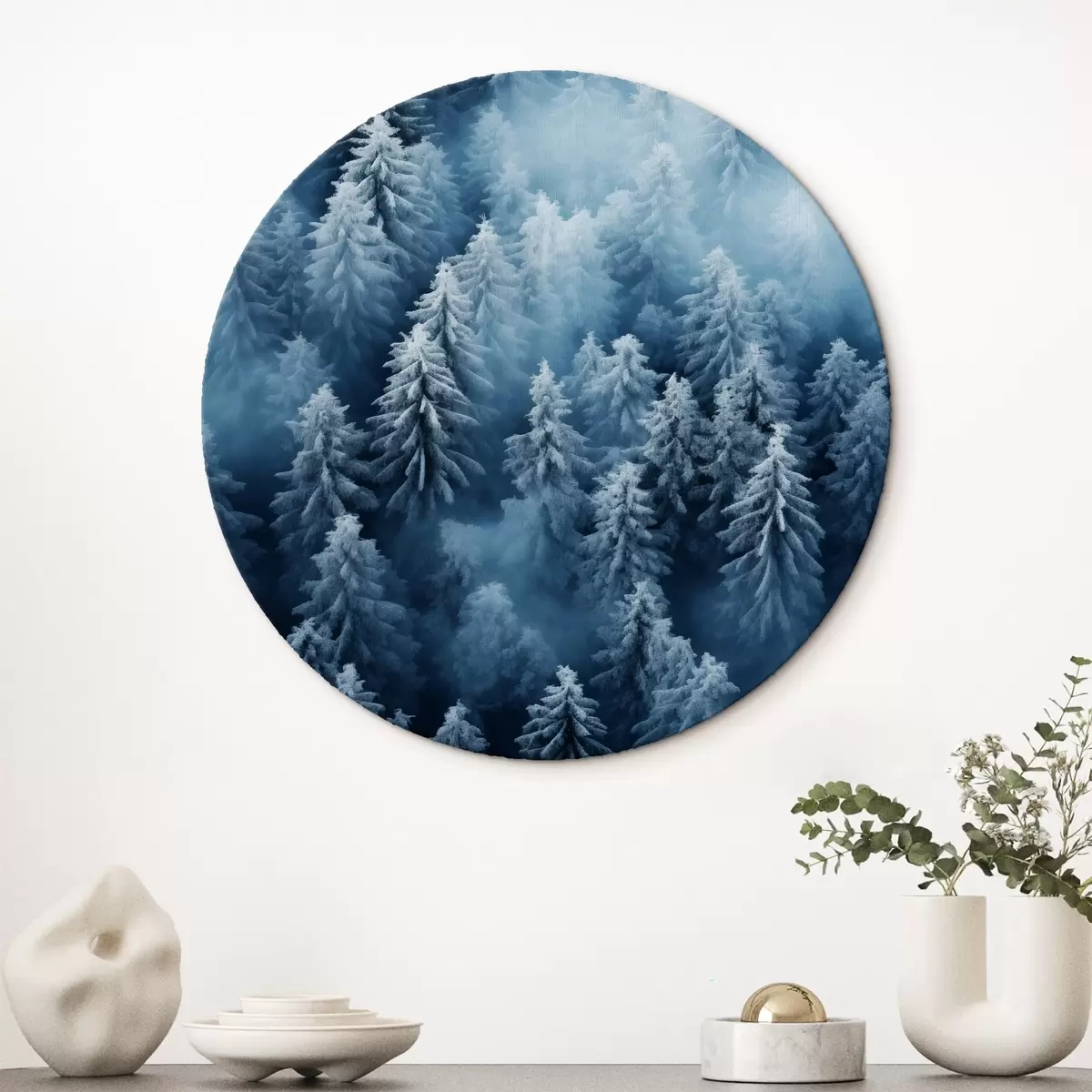 Quadri rotondi Foresta nella nebbia e nel gelo r41443