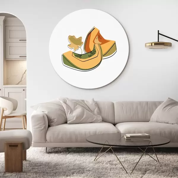 Quadri rotondi Disegno lineare di un melone, astrazione r41466