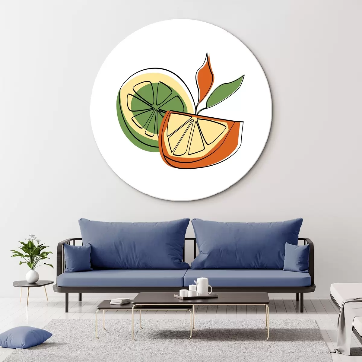 Quadri rotondi Disegno lineare di agrumi, astrazione r41468