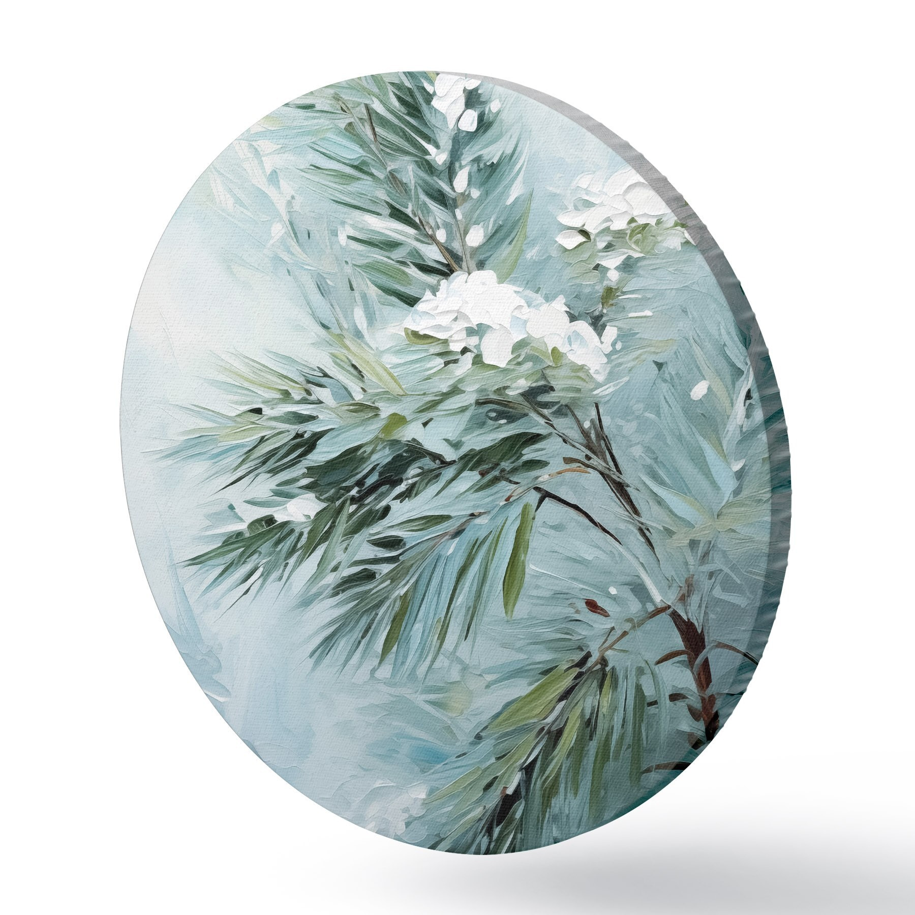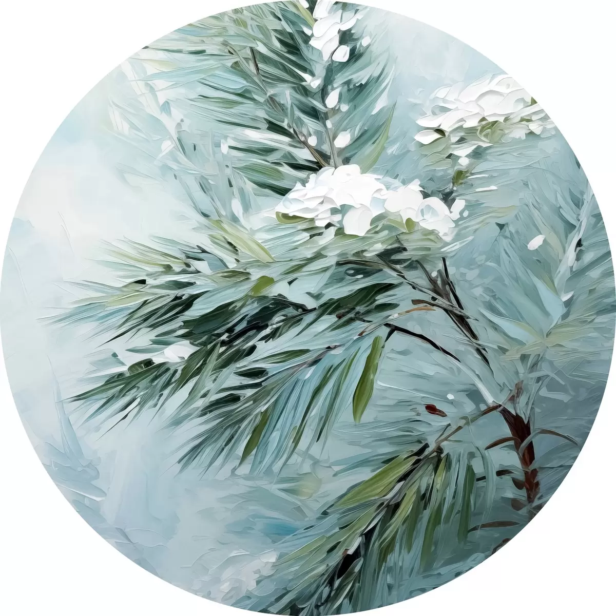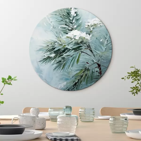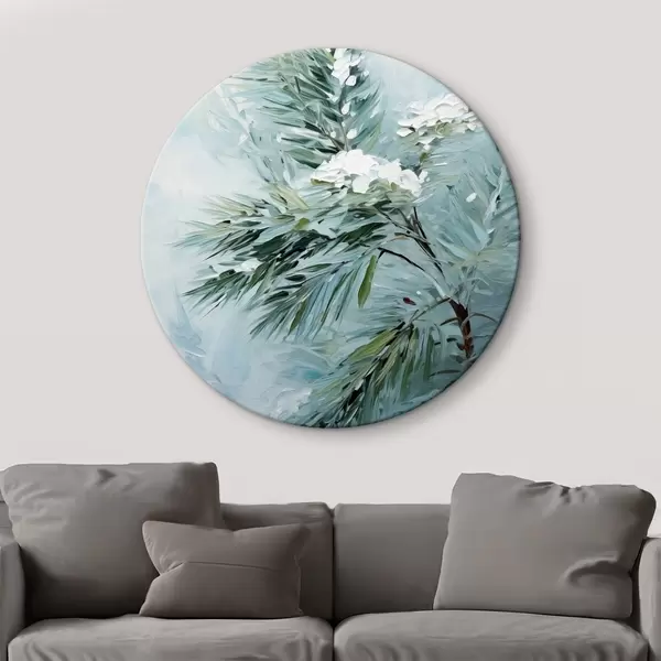 Quadri rotondi Ramo di abete rosso in un'imitazione innevata del quadro r41474