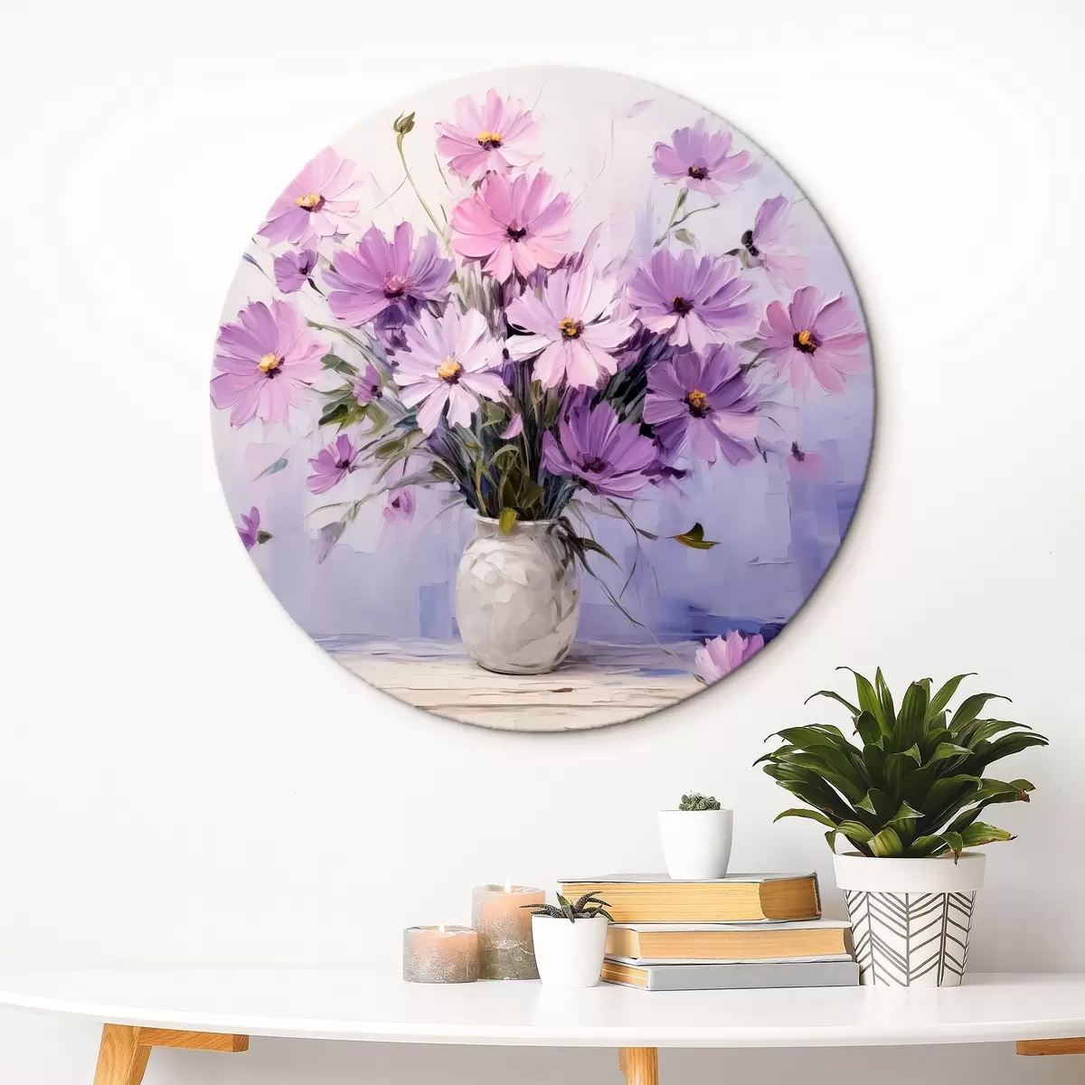 Quadri rotondi Delicati fiori viola in un vaso r41475