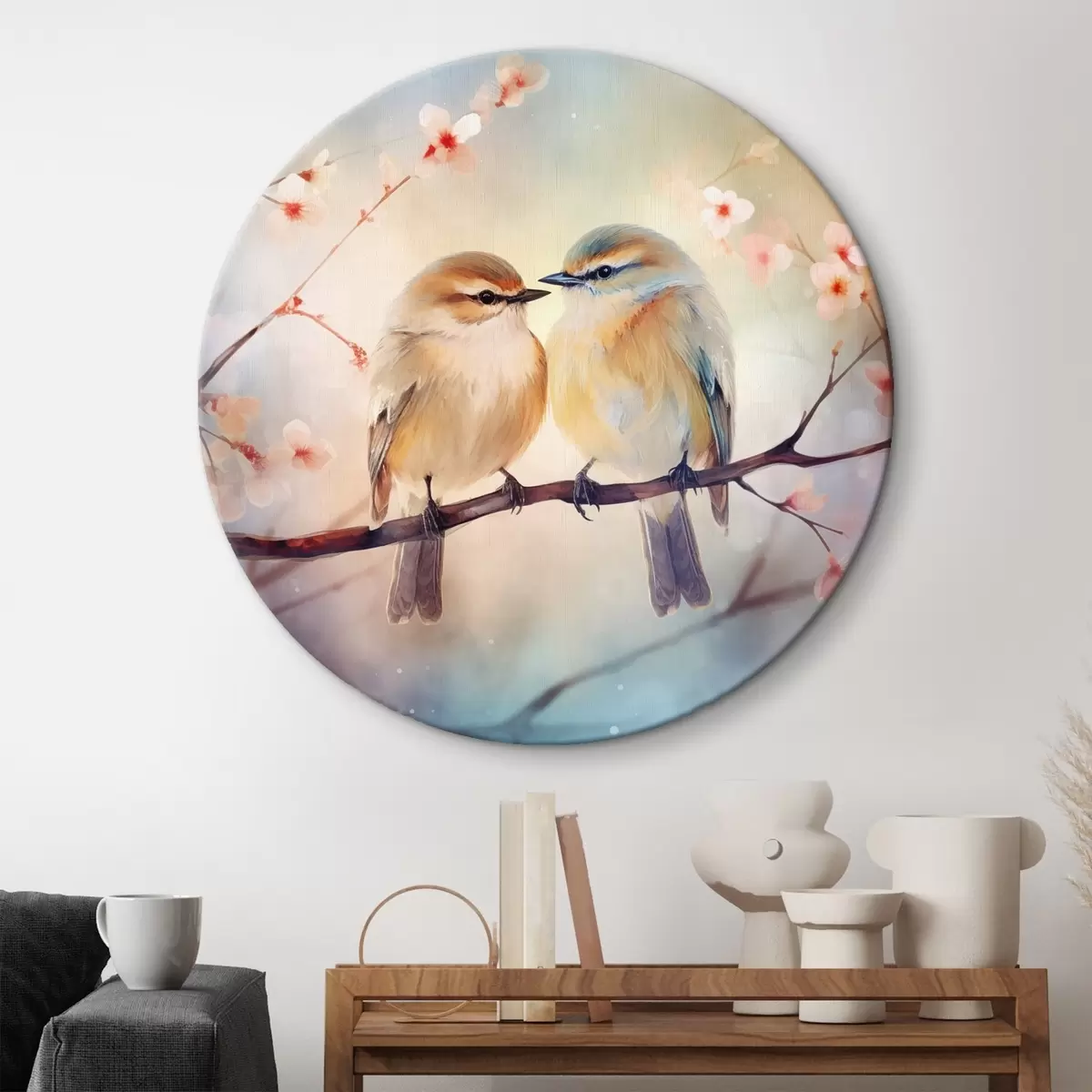 Quadri rotondi Una coppia di uccelli siede su un ramo fiorito r41476
