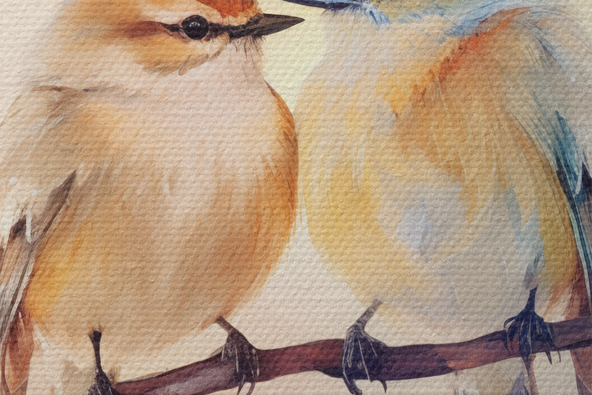 Immagine Una coppia di uccelli siede su un ramo fiorito Nr r41476
