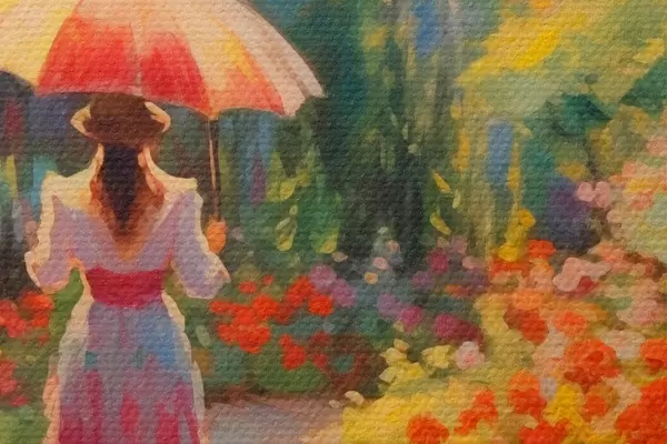 Immagine Signora con ombrello in un giardino fiorito Nr r41495