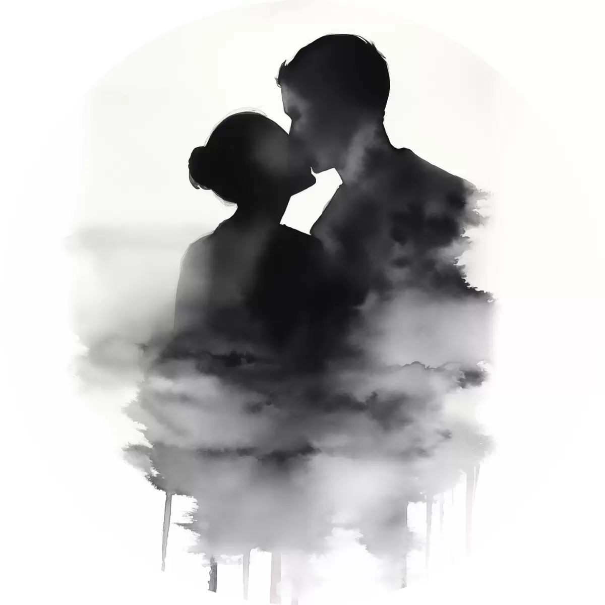 Immagine Silhouette di una coppia con tecnica ad acquerello in bianco e nero Nr r41496