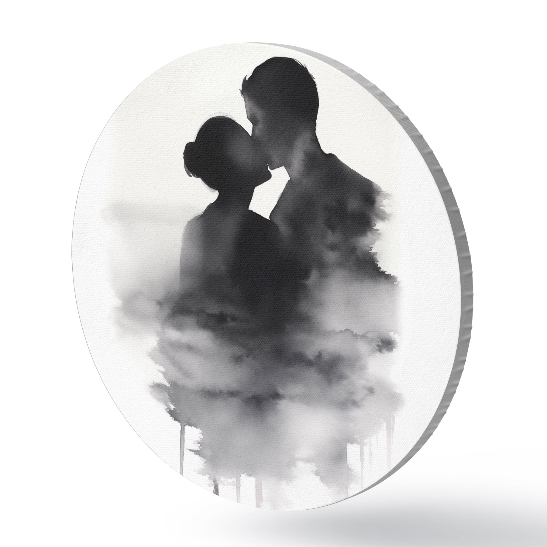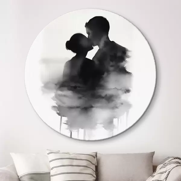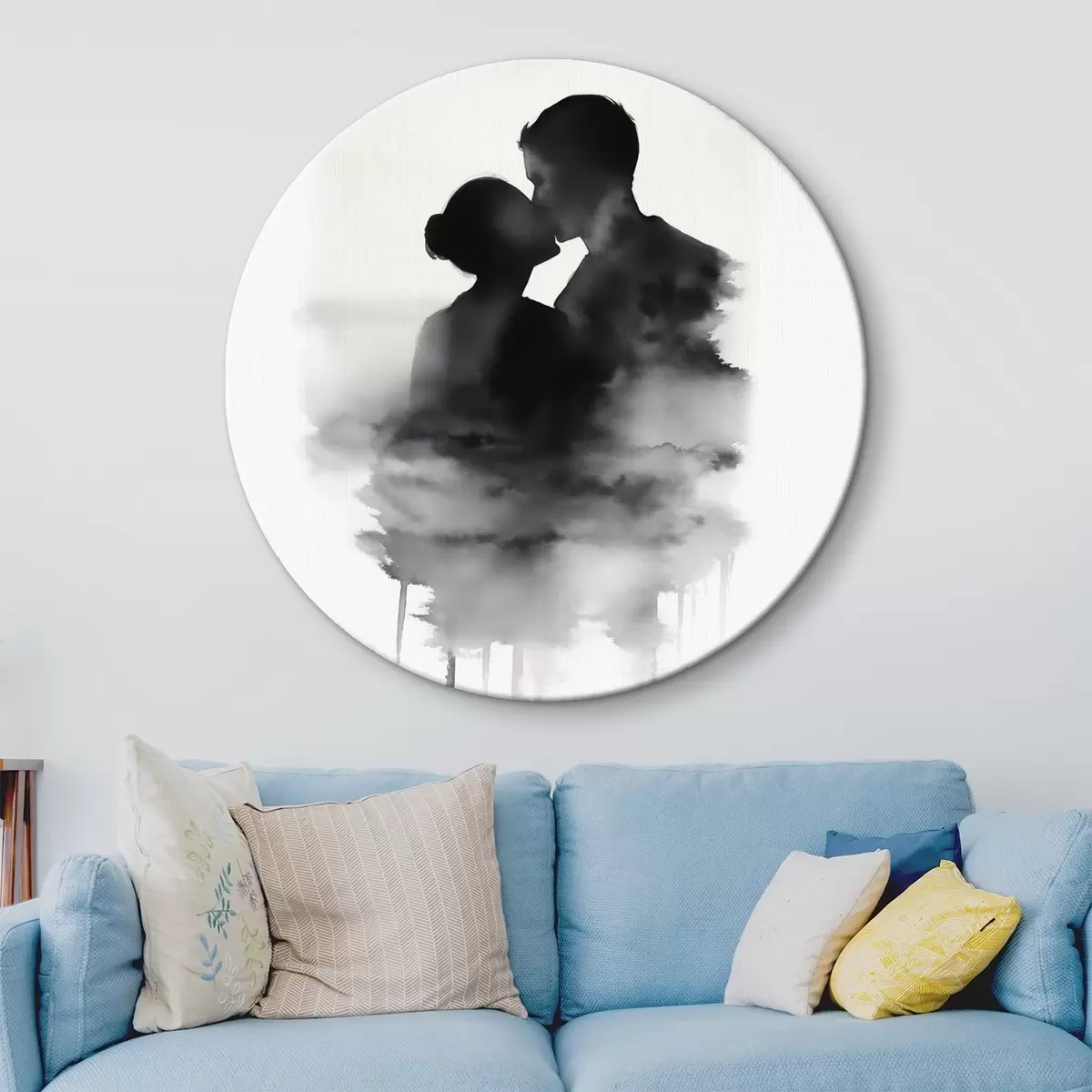 Quadri rotondi Silhouette di una coppia con tecnica ad acquerello in bianco e nero r41496