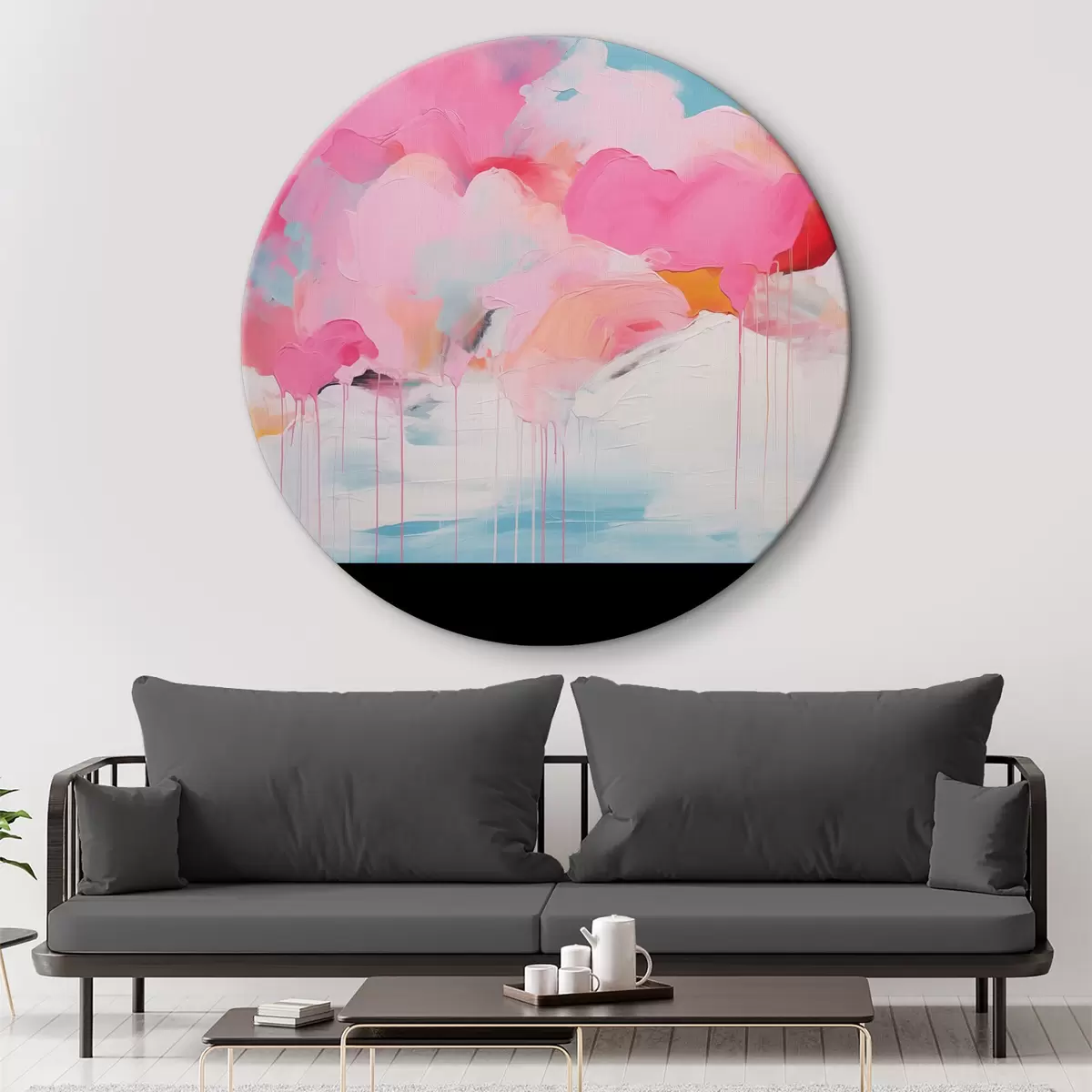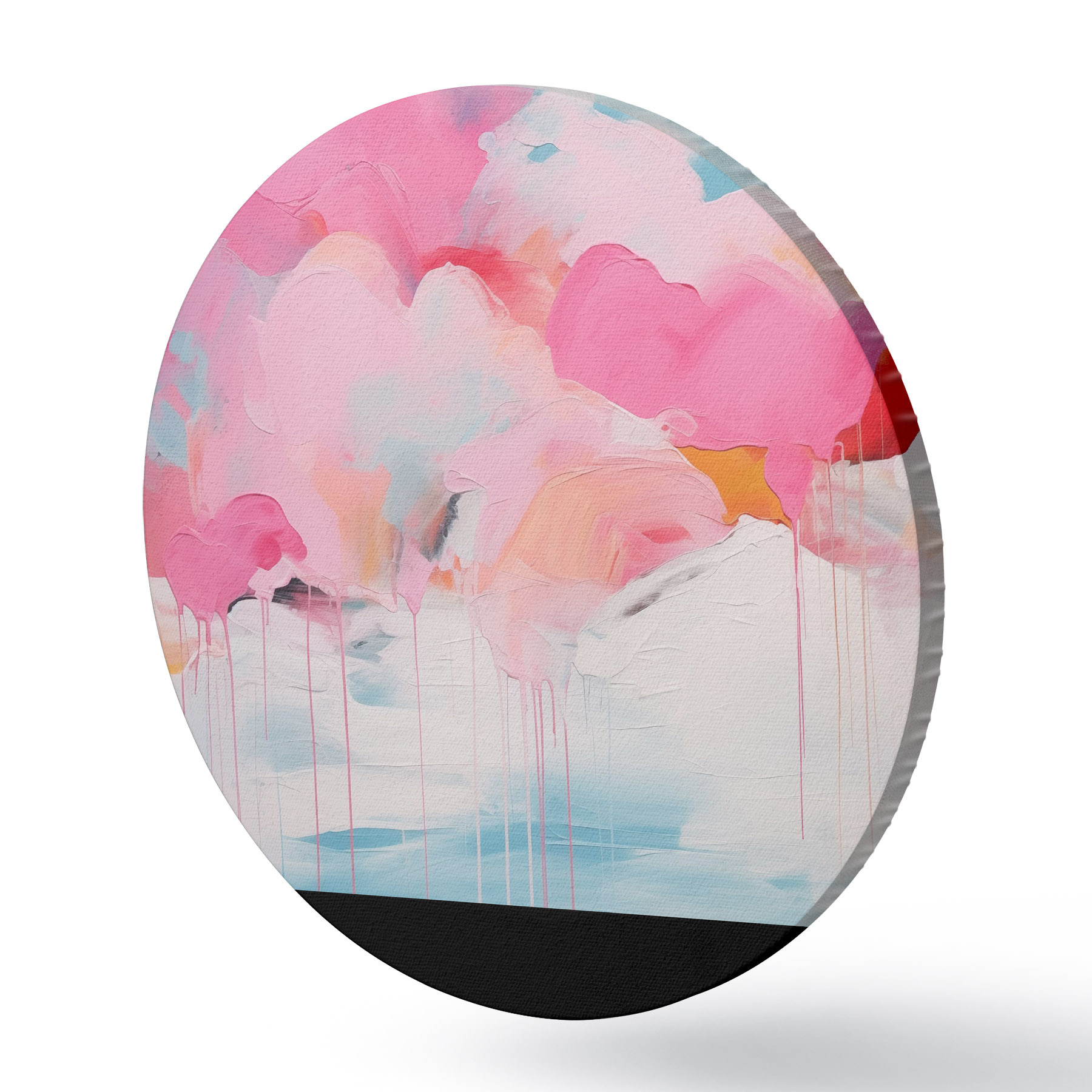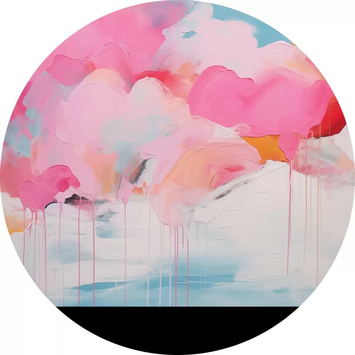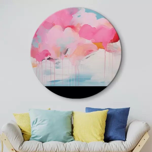 Quadri rotondi Nuvole rosa, astrazione luminosa con linee morbide r41502