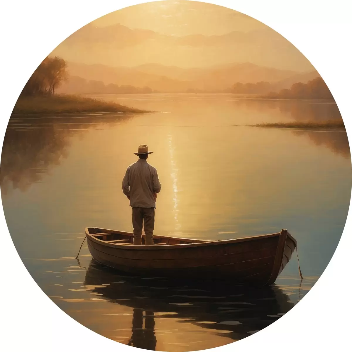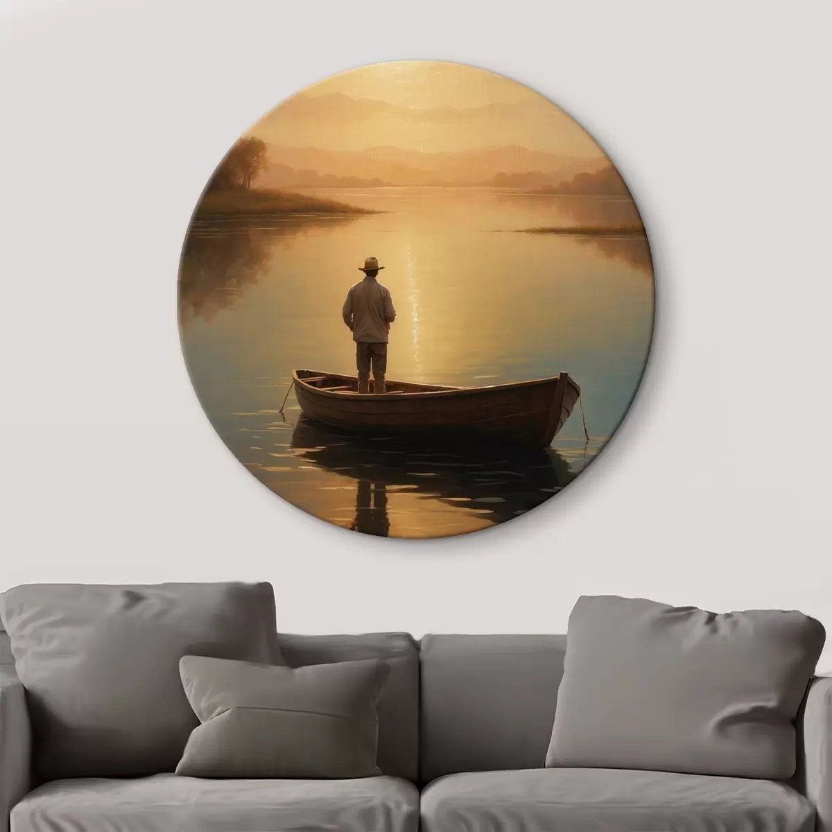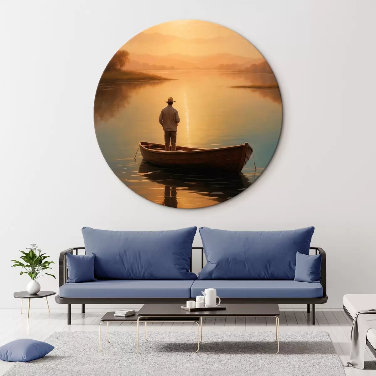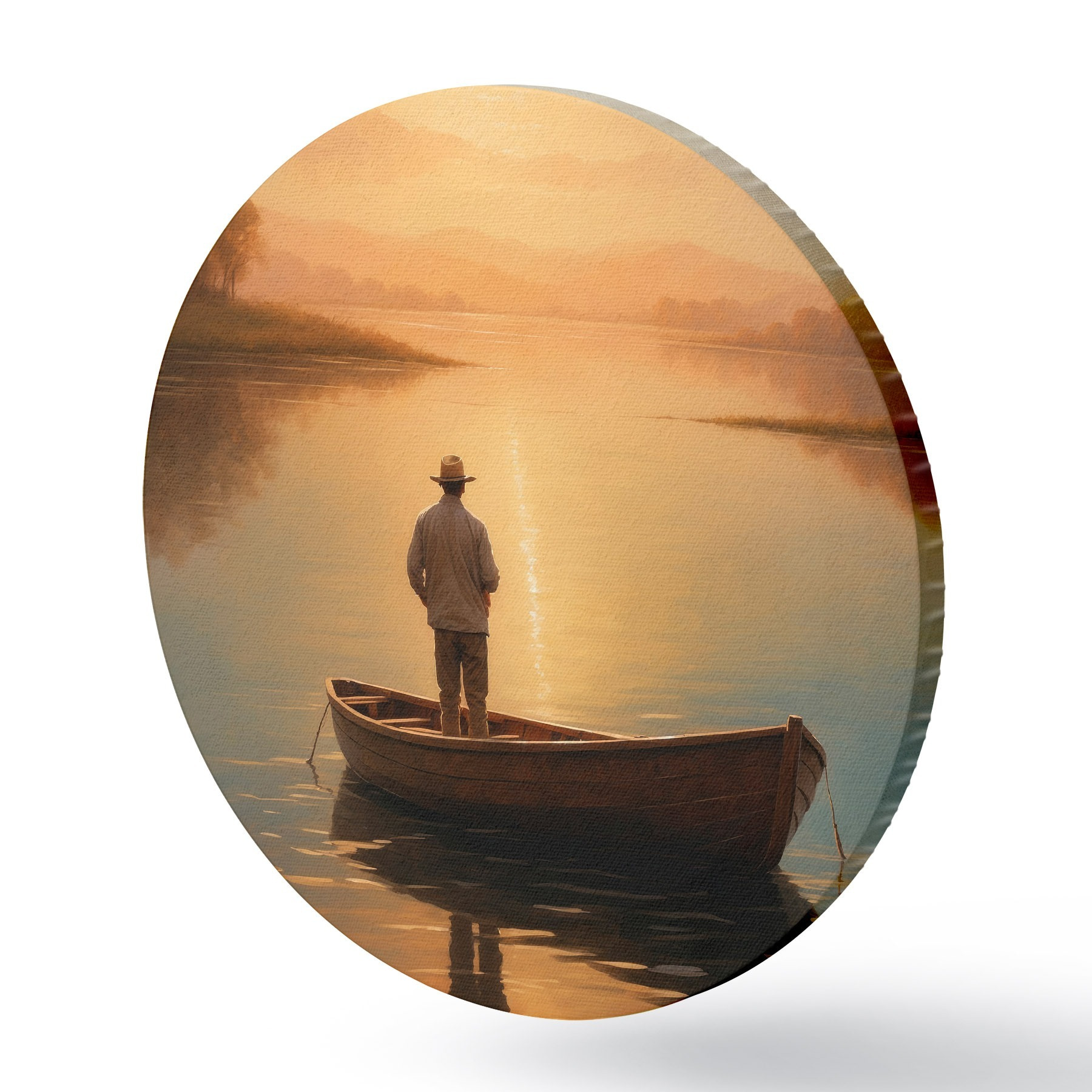 Quadri rotondi Uomo in barca in mezzo a un lago r41770