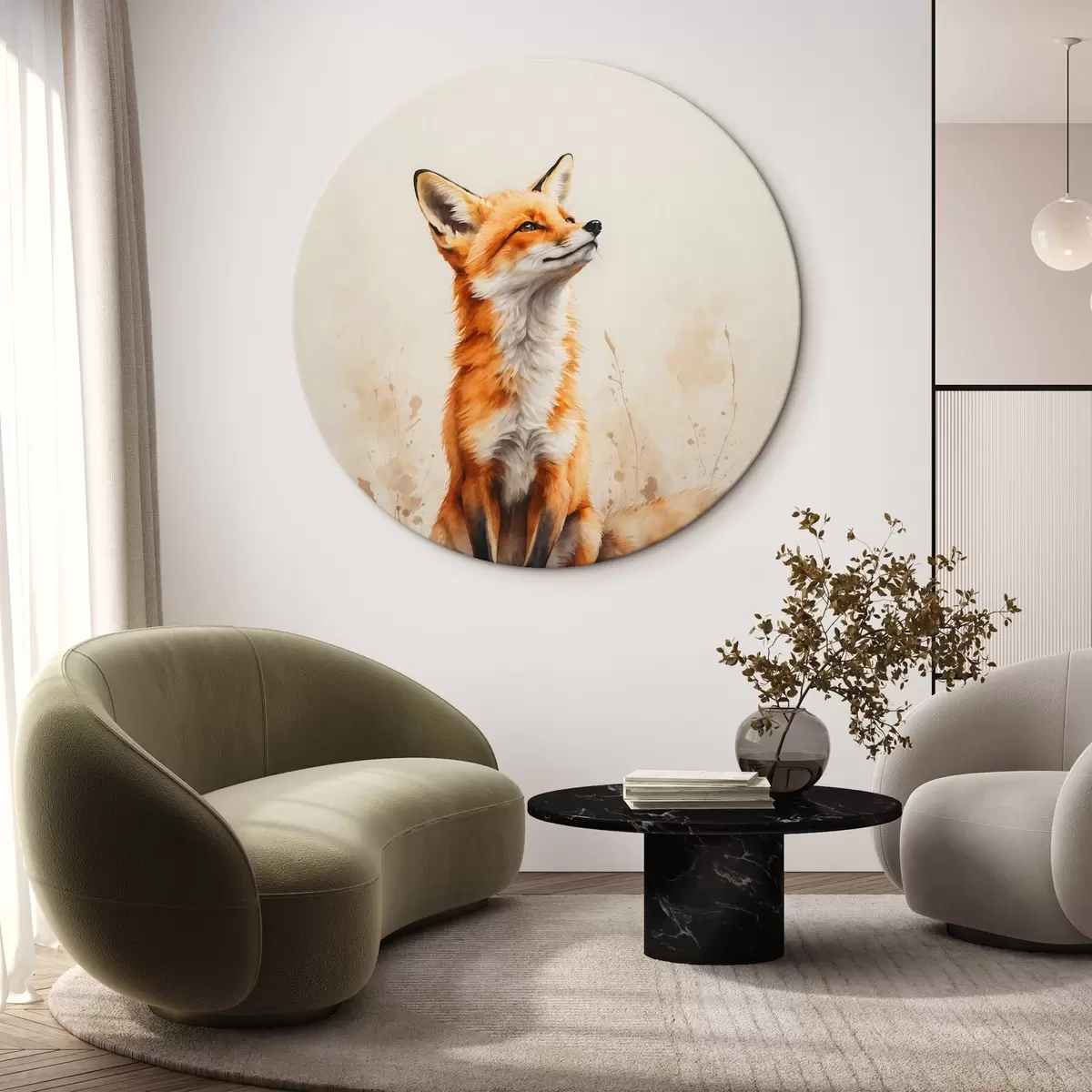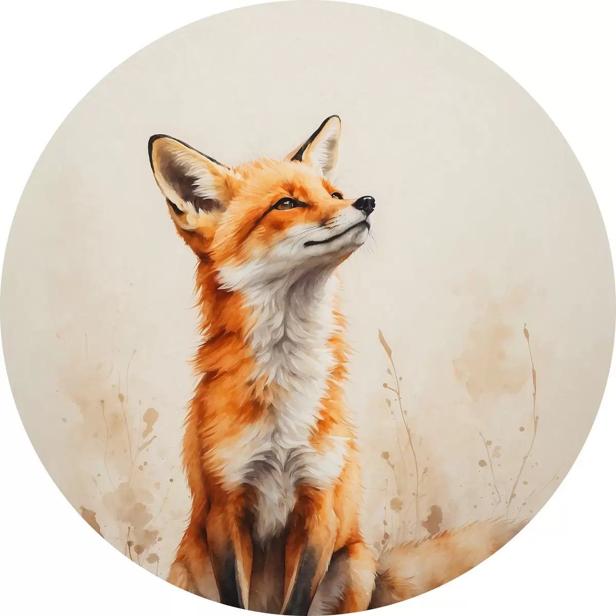 Quadri rotondi Volpe su sfondo beige r41778