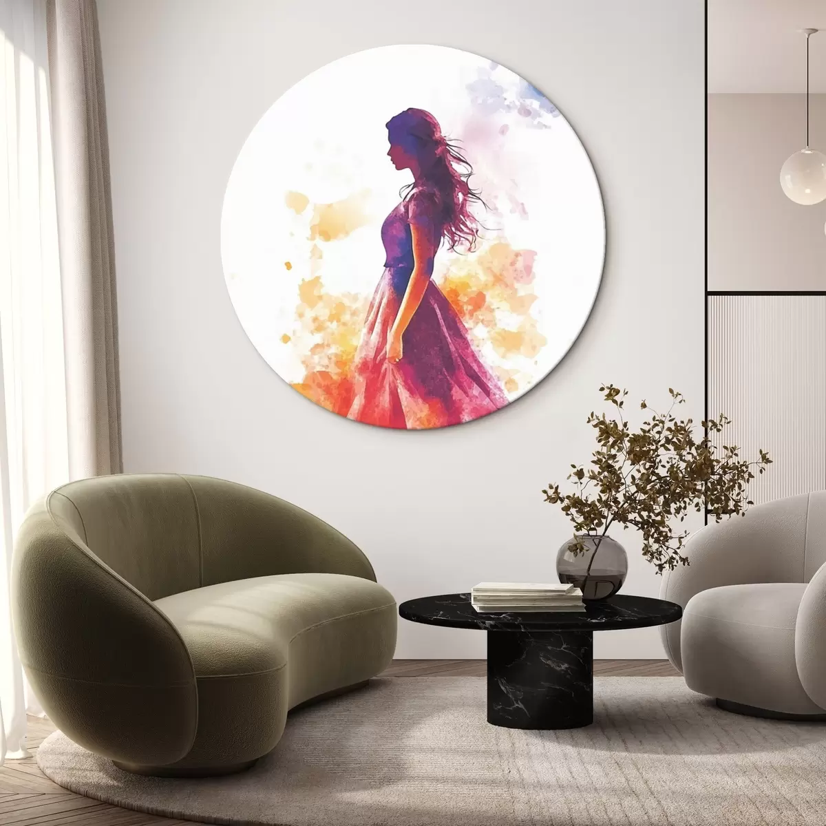 Quadri rotondi Ritratto di ragazza in stile acquerello r42080