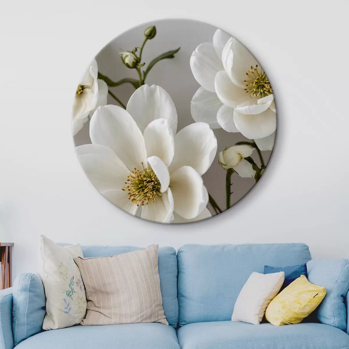 Quadri rotondi Fiori e steli bianchi su sfondo chiaro r42097