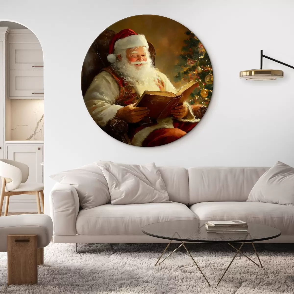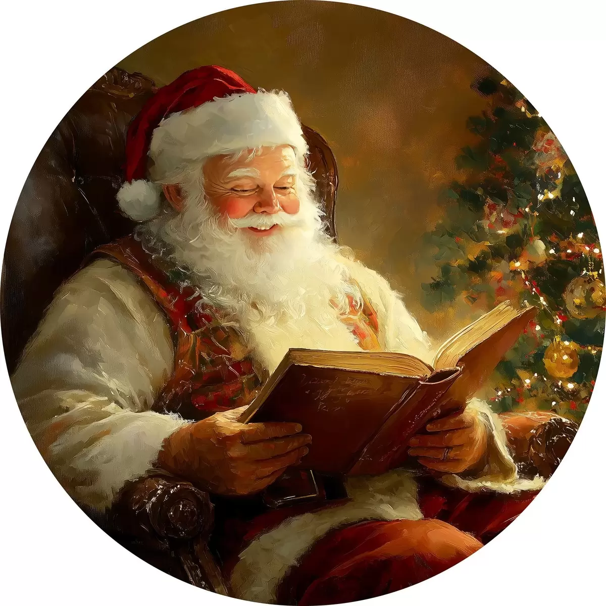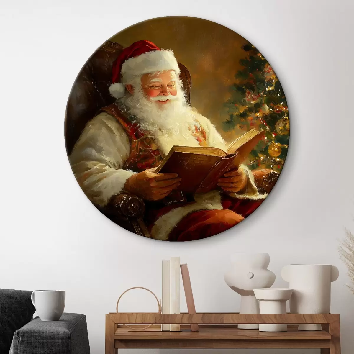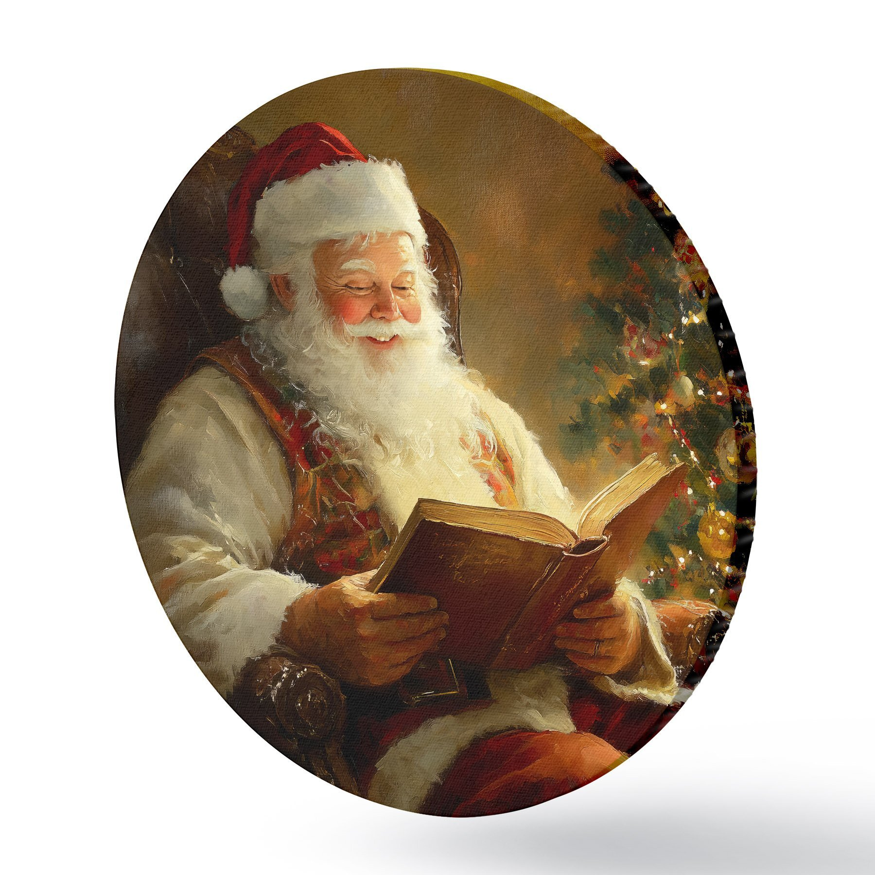 Quadri rotondi Babbo Natale sta leggendo un libro vicino all'albero di Natale r42100