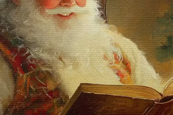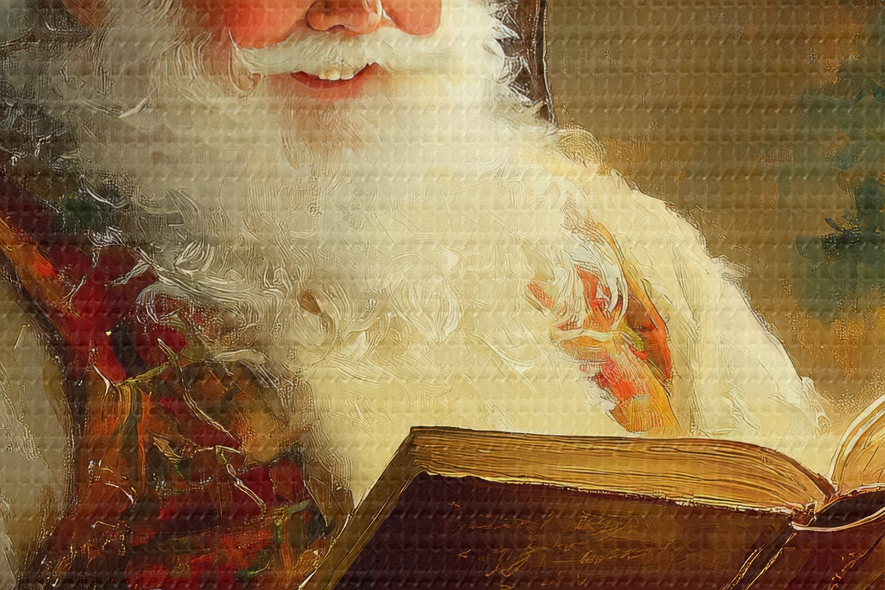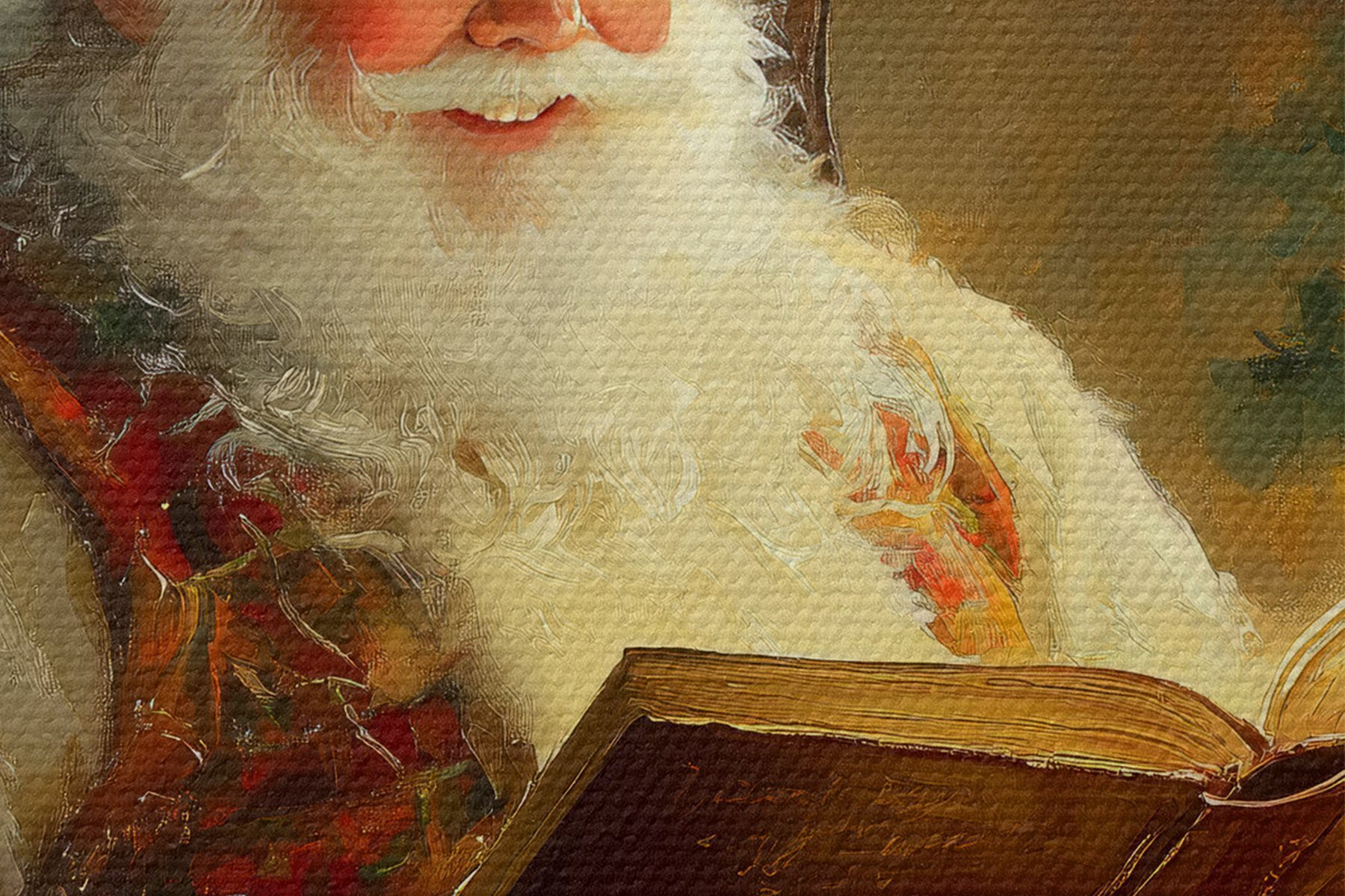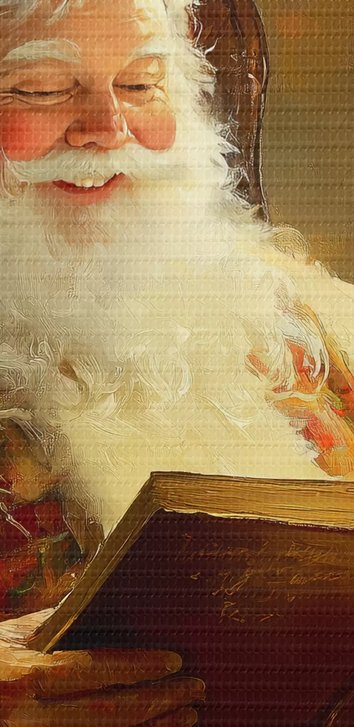 Immagine Babbo Natale sta leggendo un libro vicino all'albero di Natale Nr r42100