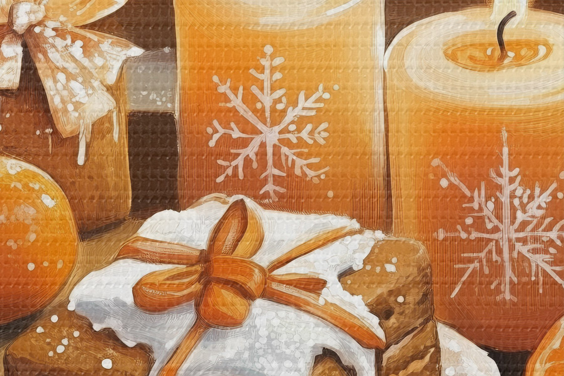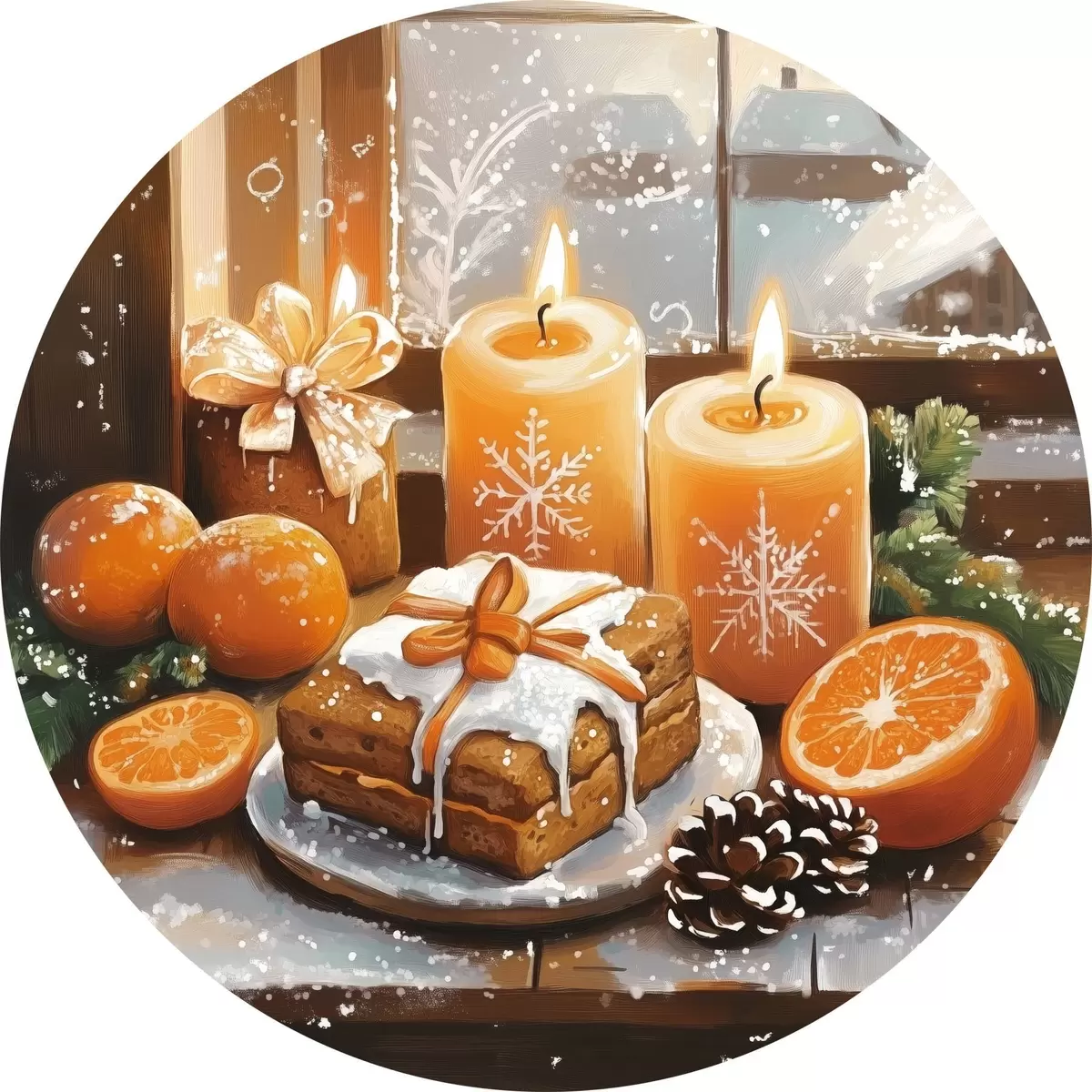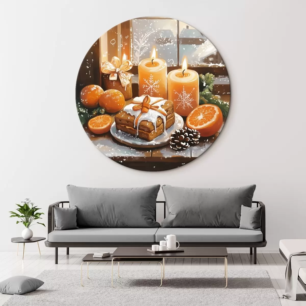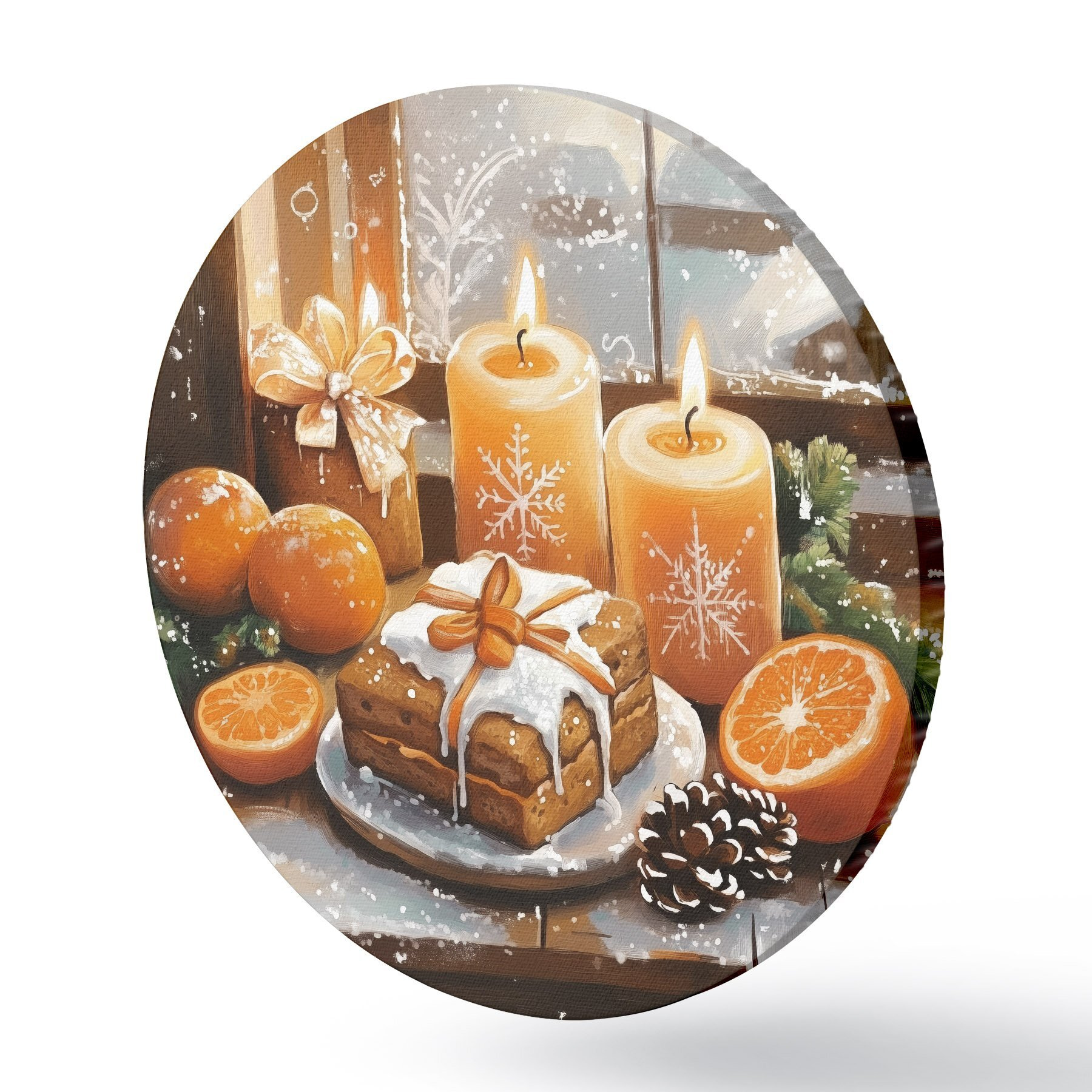Quadri rotondi Torta di Natale, mandarini, candele r42101