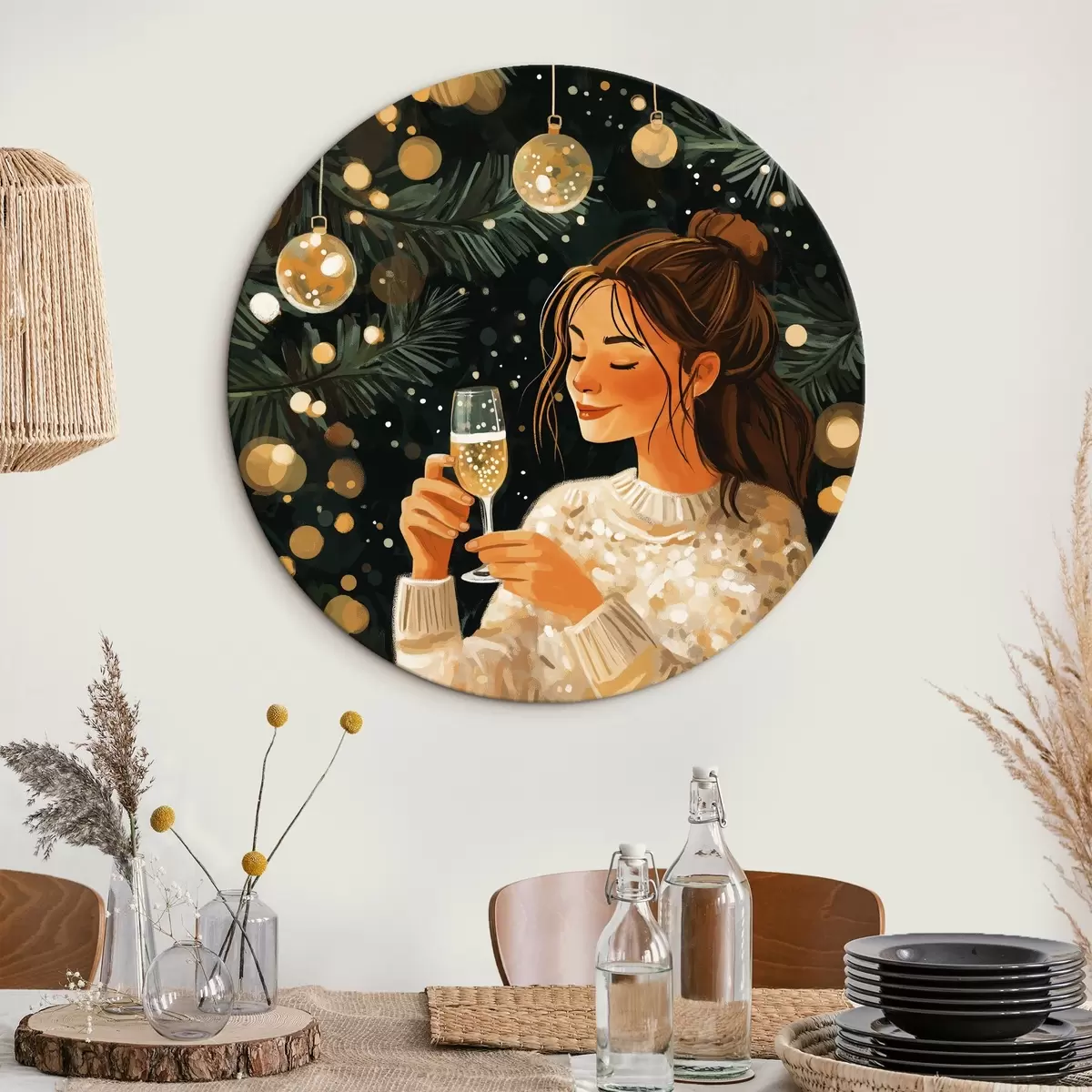 Quadri rotondi Una ragazza con un bicchiere di champagne a Capodanno r42102