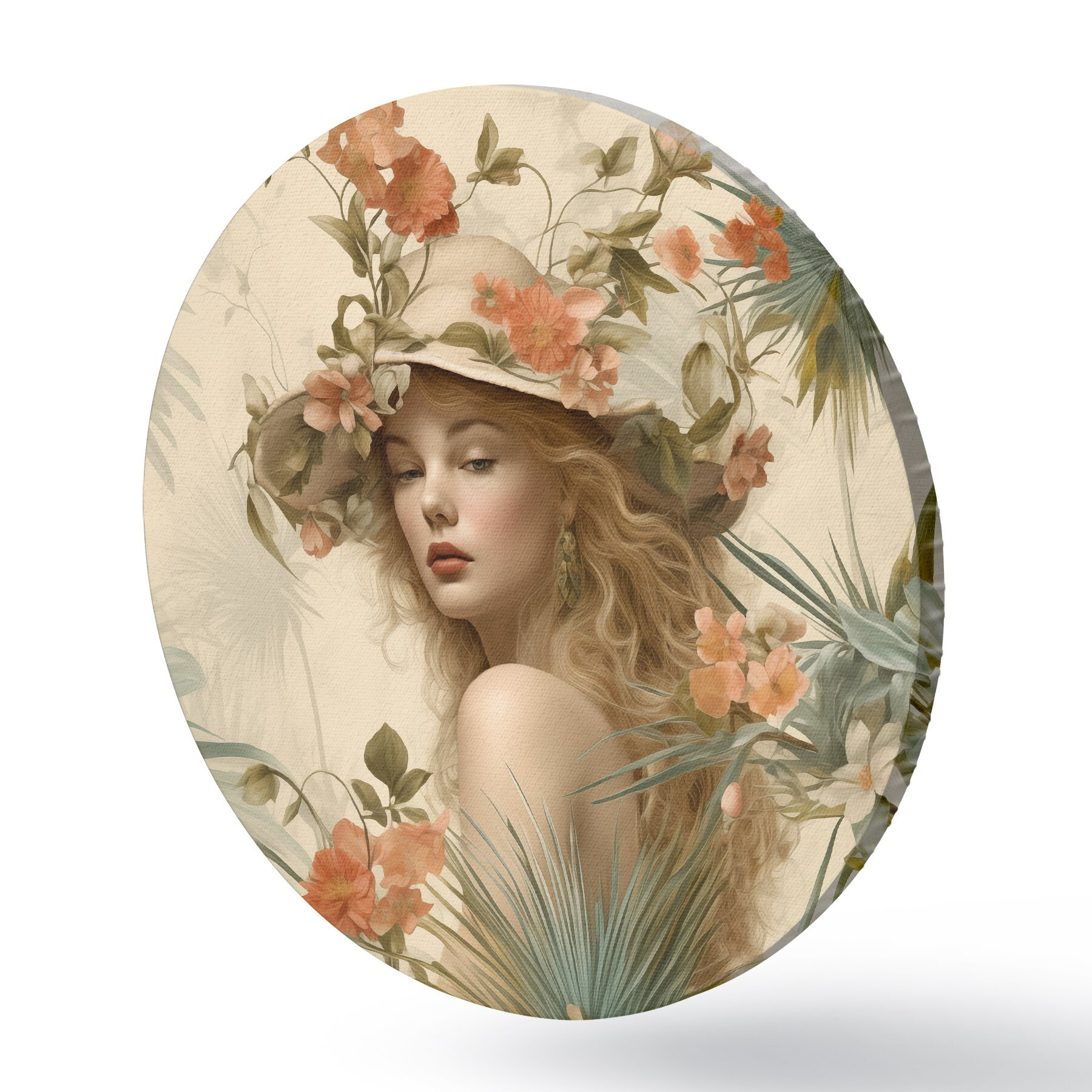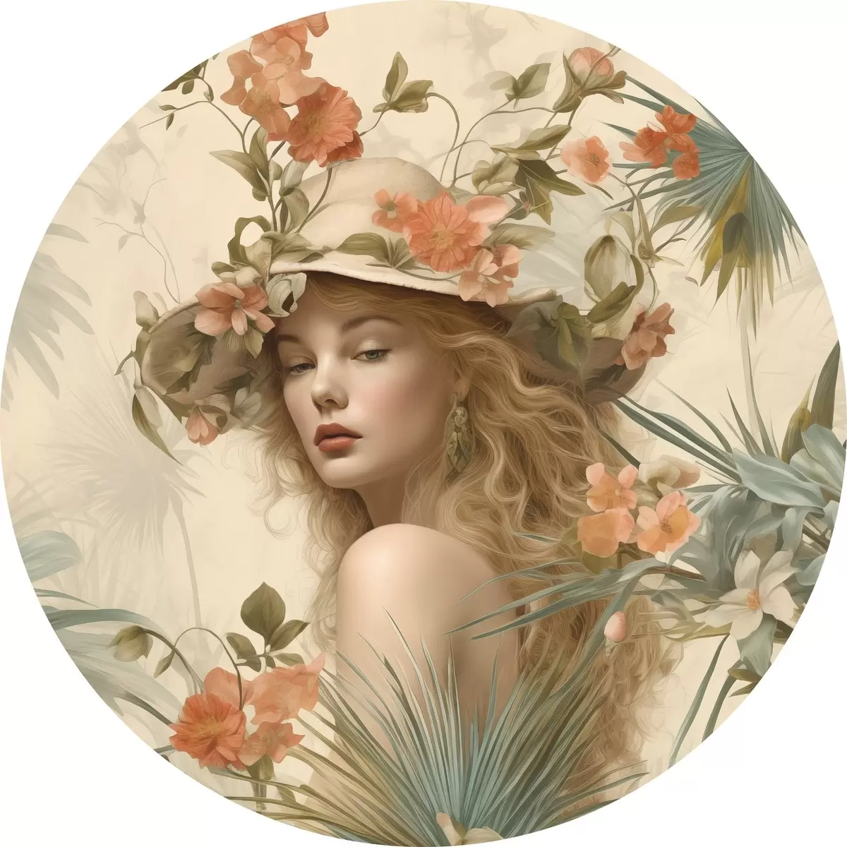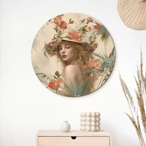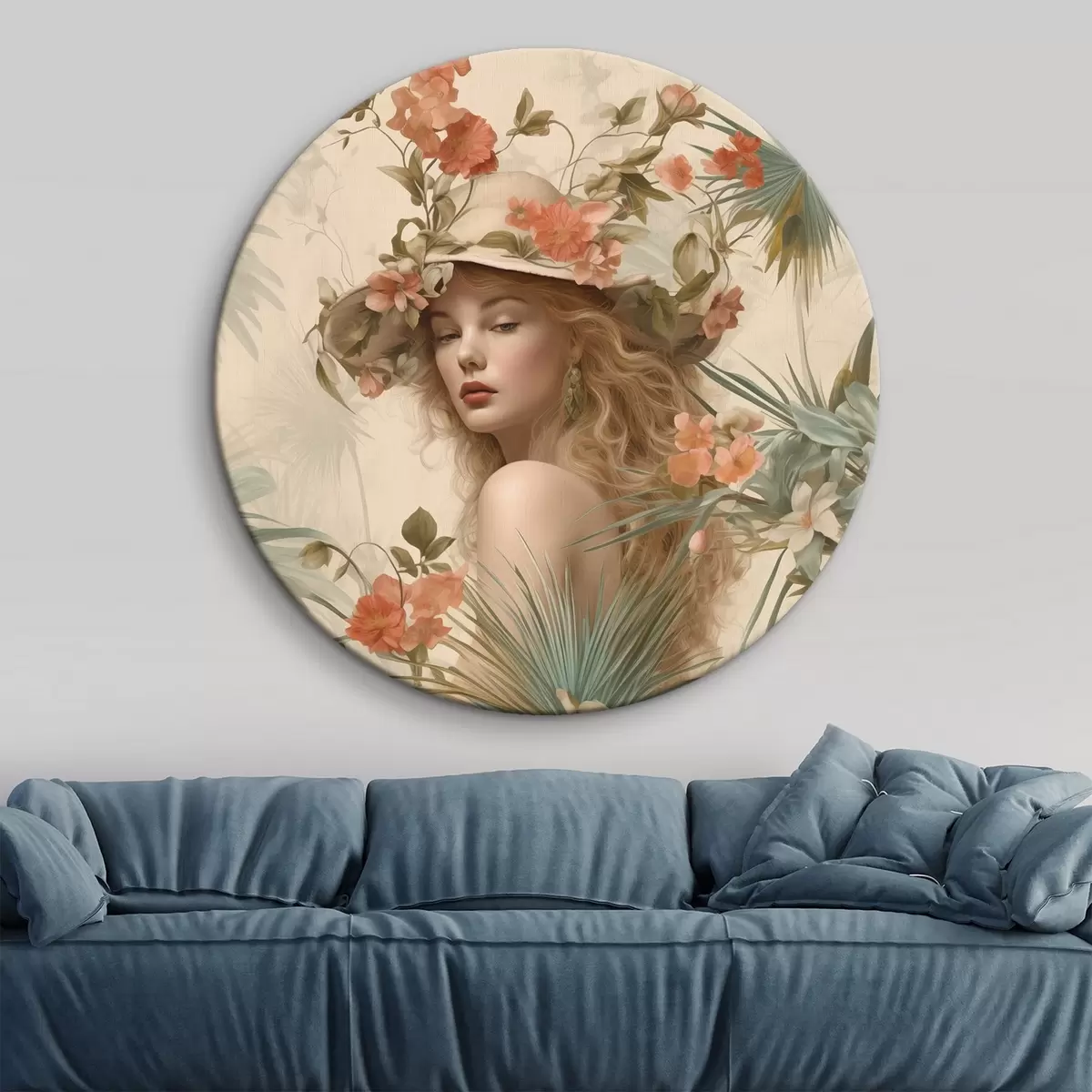 Quadri rotondi Ragazza con cappello ai tropici in stile vintage r42115