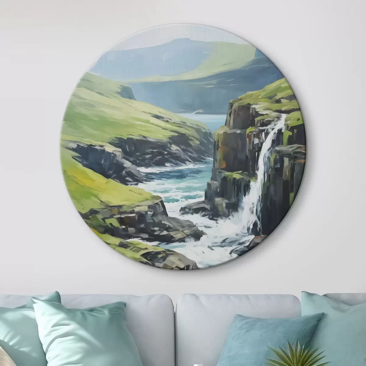 Quadri rotondi Fiume tra i fiordi imitazione di un dipinto r42125