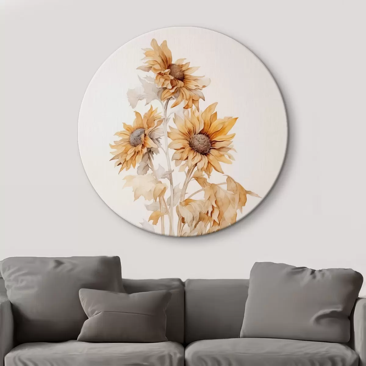 Quadri rotondi Acquerello imitazione girasoli r42127