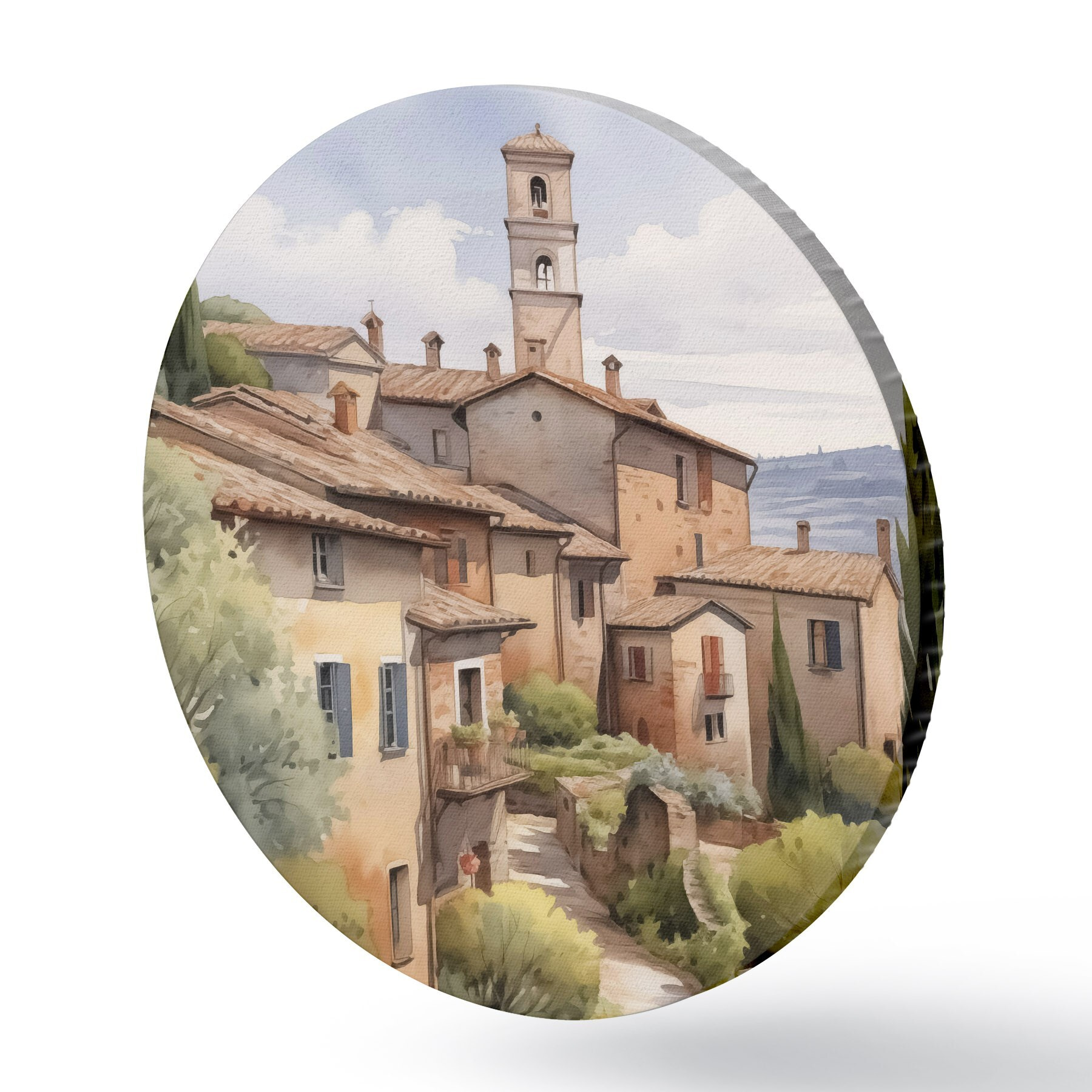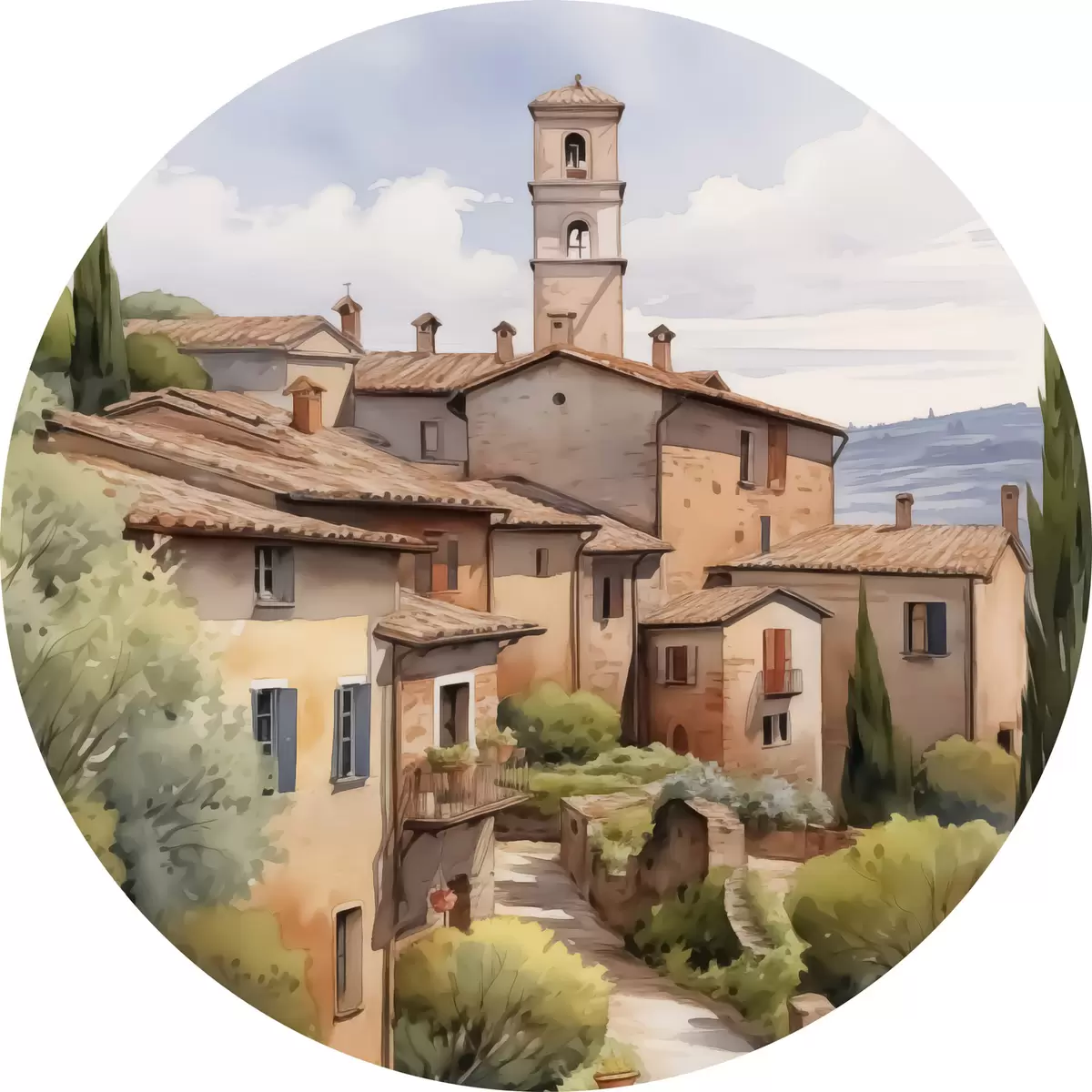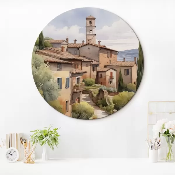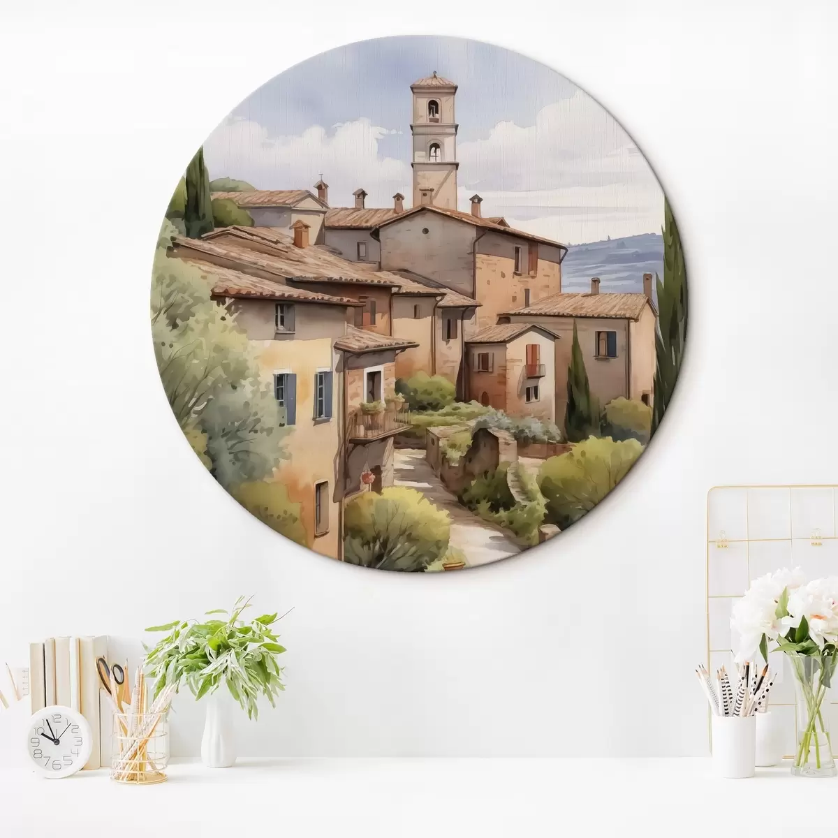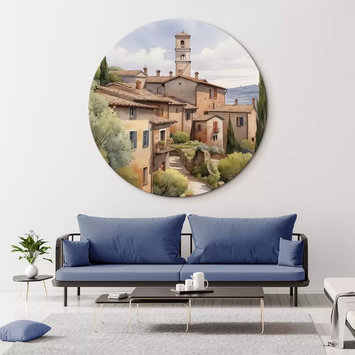 Quadri rotondi Imitazione di strada di periferia italiana ad acquerello r42135