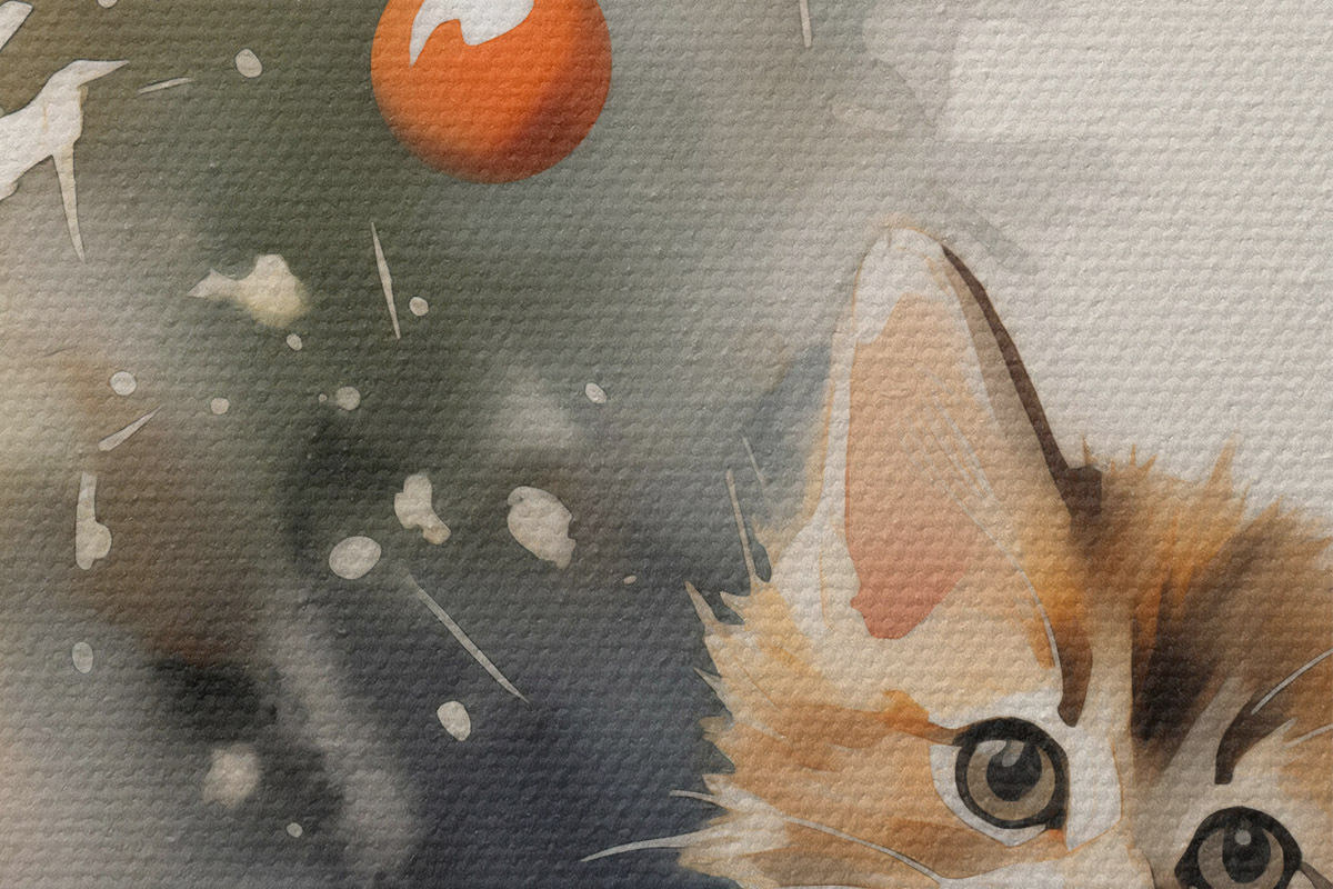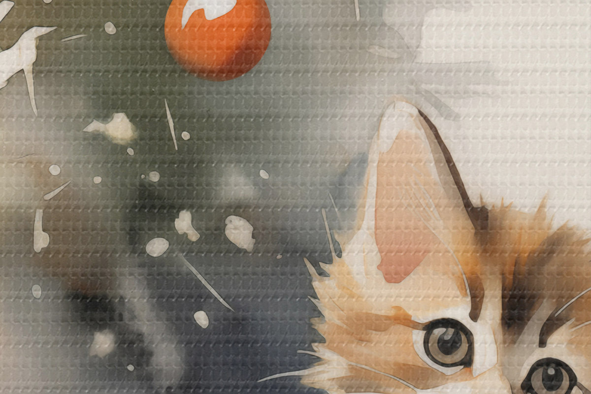 Immagine Gattino vicino all'albero di Natale imitazione di acquerello bagnato Nr r42140