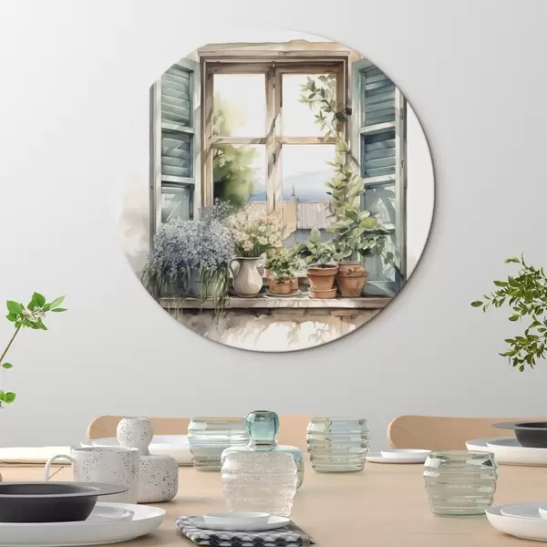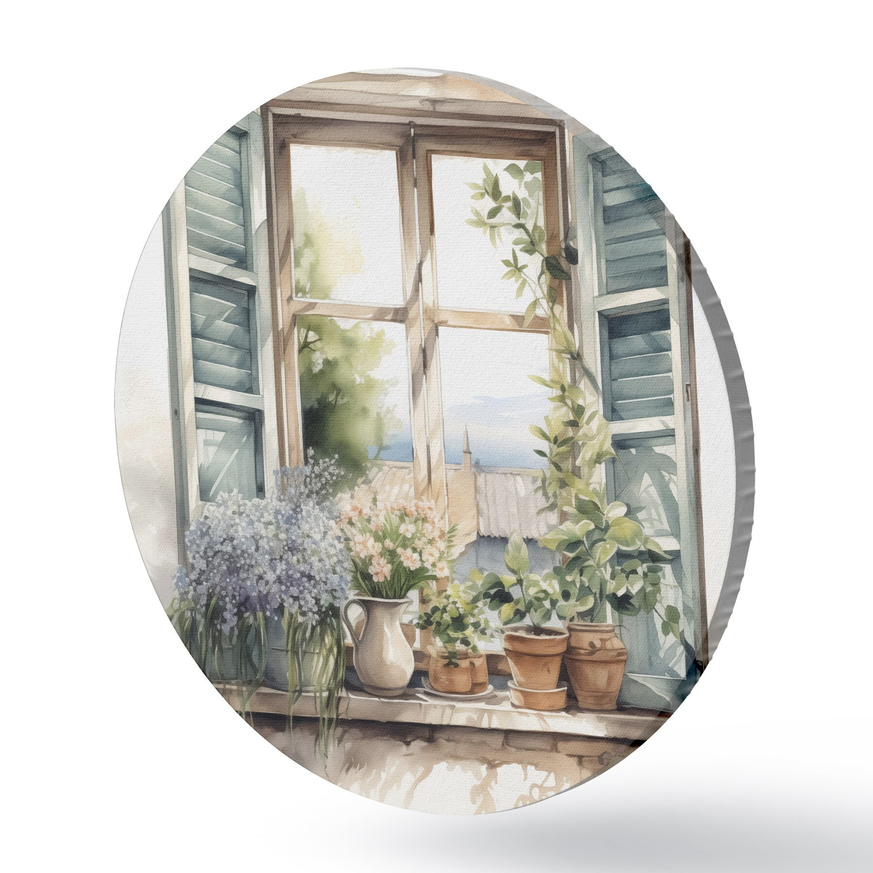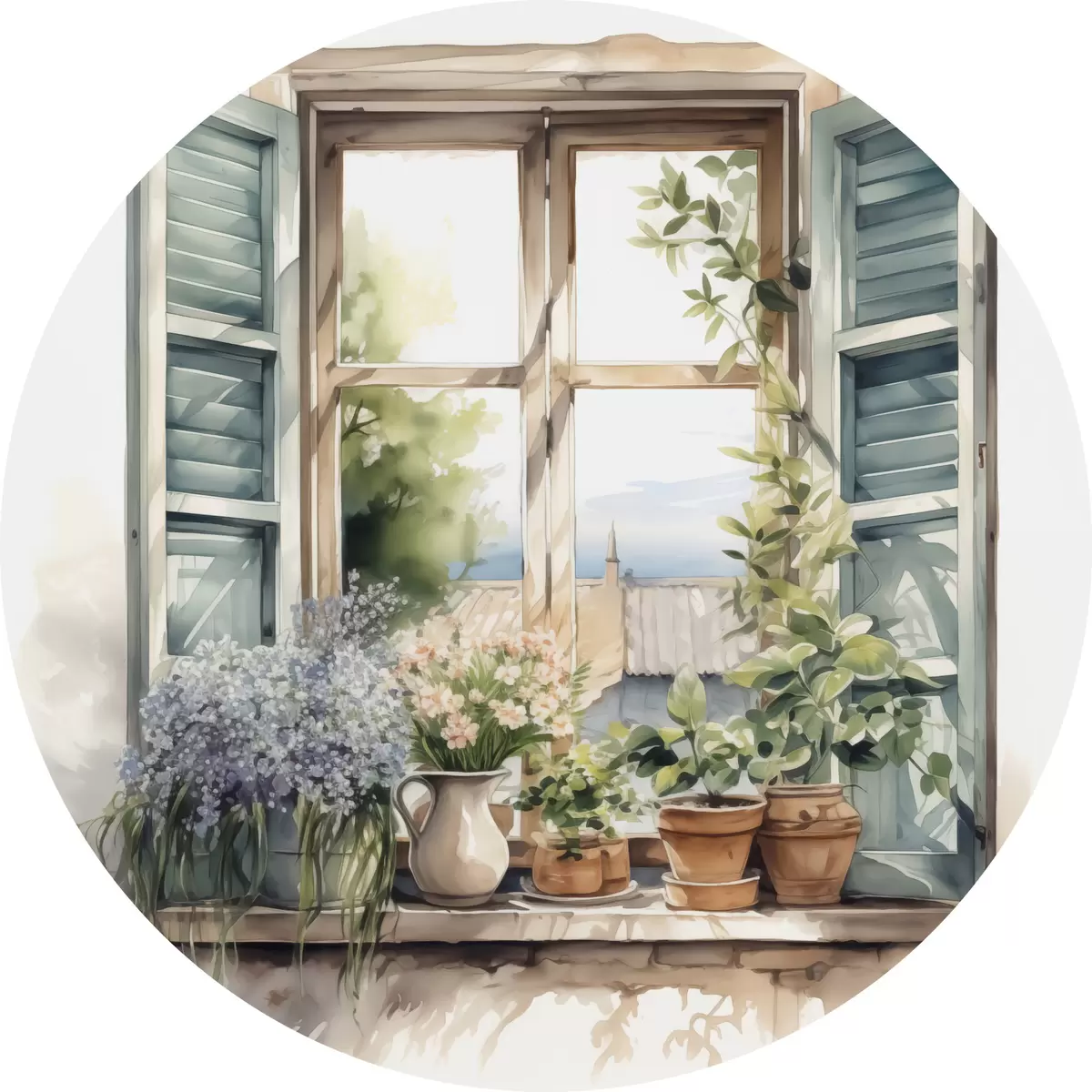 Quadri rotondi Vegetazione sul davanzale della finestra imitazione dell'acquerello r42144