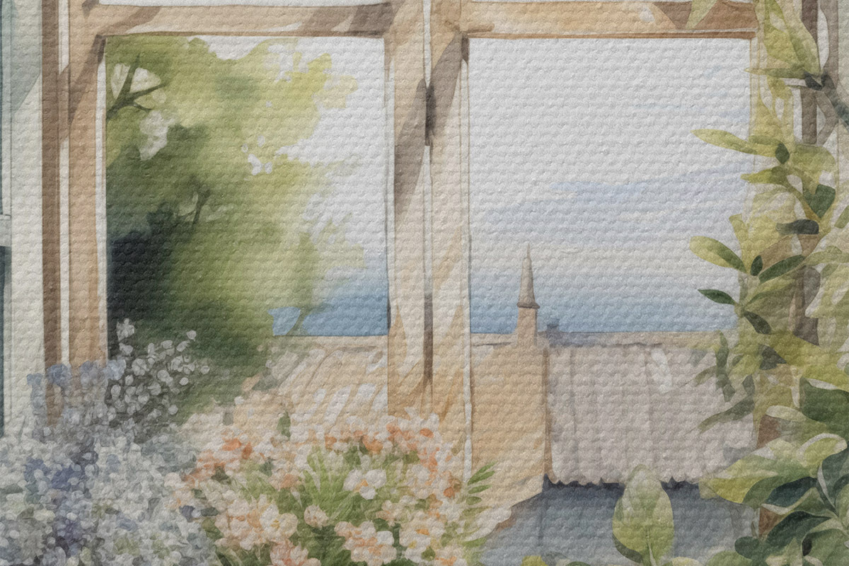 Immagine Vegetazione sul davanzale della finestra imitazione dell'acquerello Nr r42144