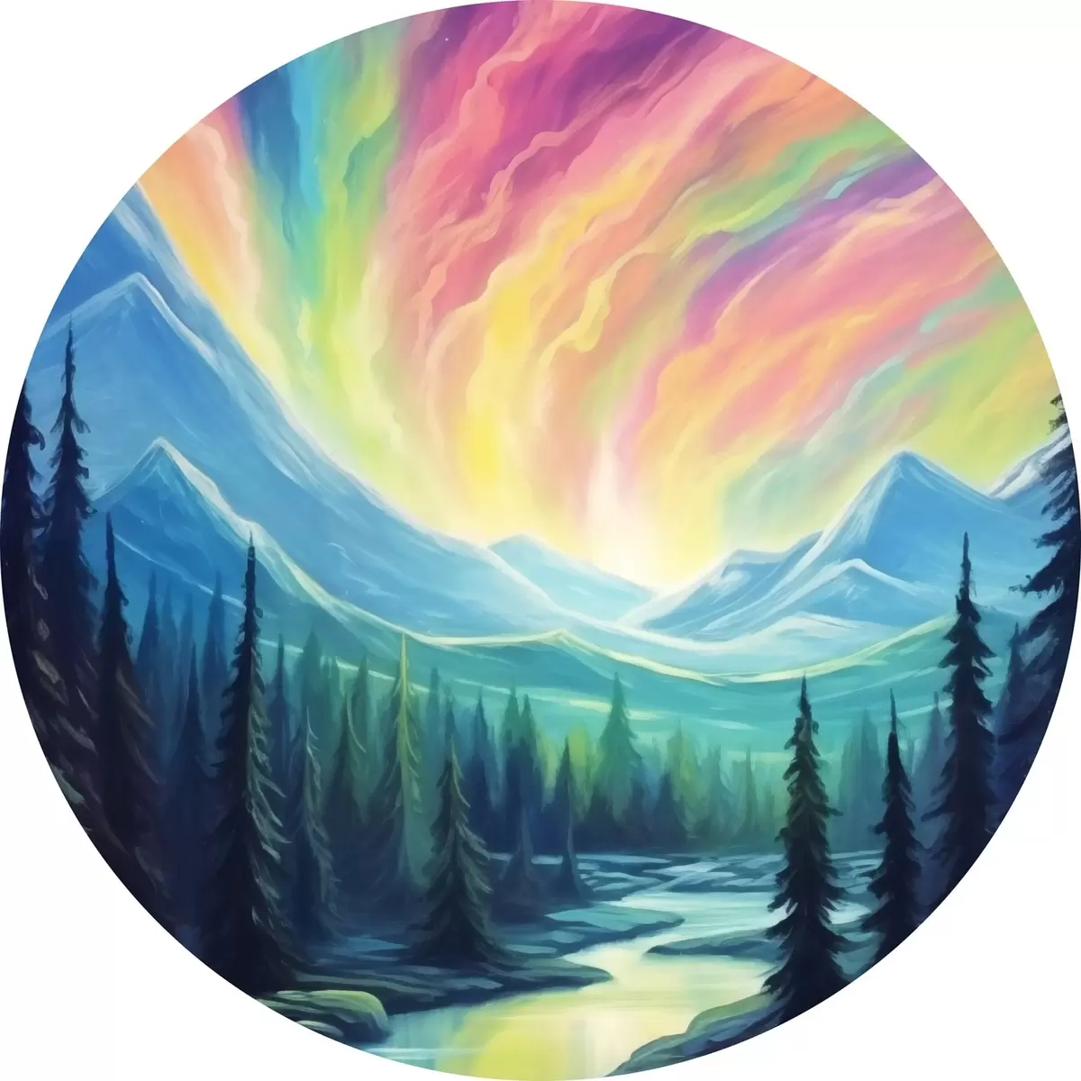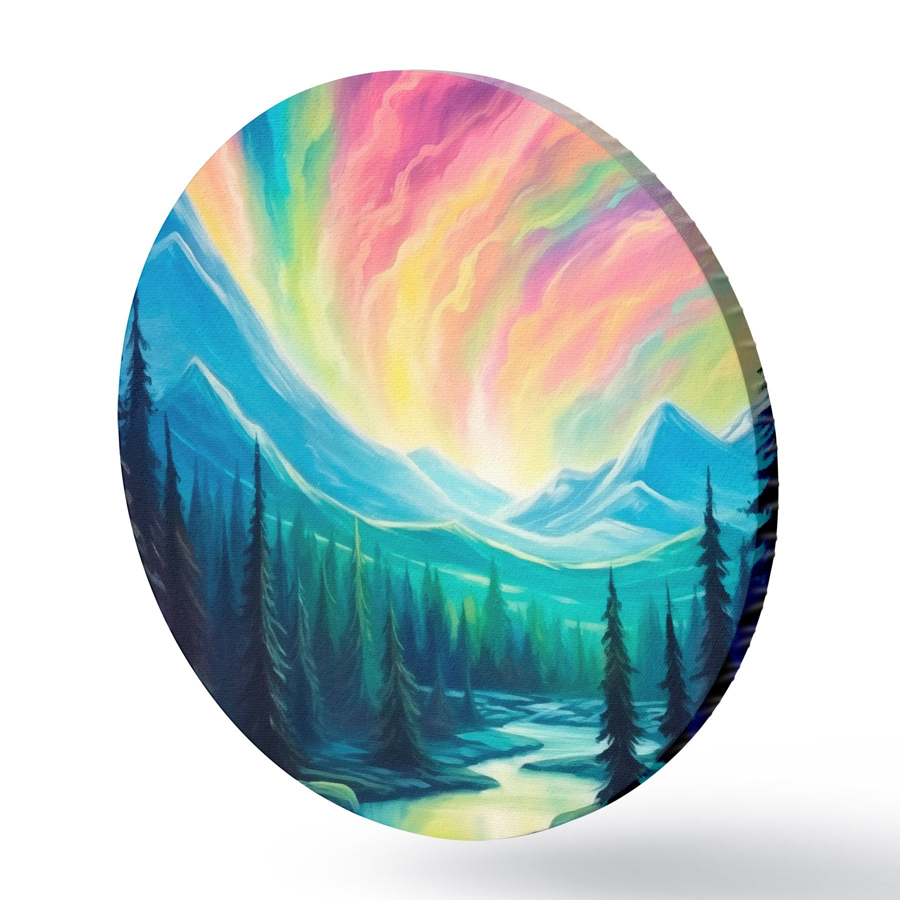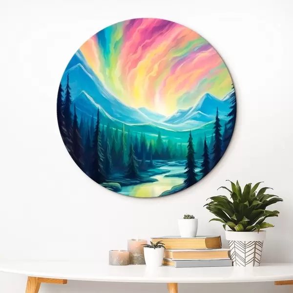 Quadri rotondi L'aurora boreale sul paesaggio montano r42150