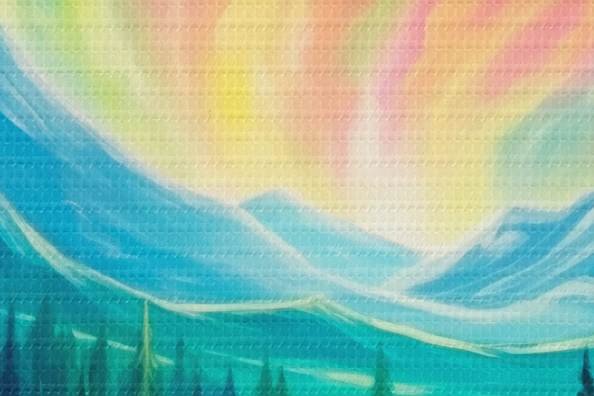 Per tendere la tela su barelle senza danneggiare l'immagine, utilizziamo l'immagine specchiata.