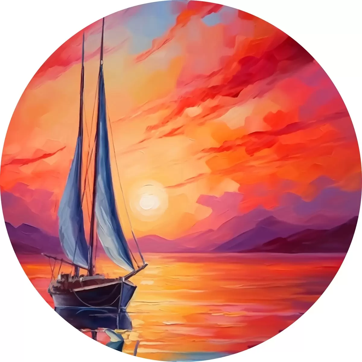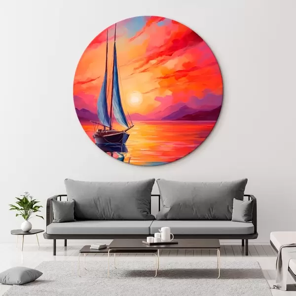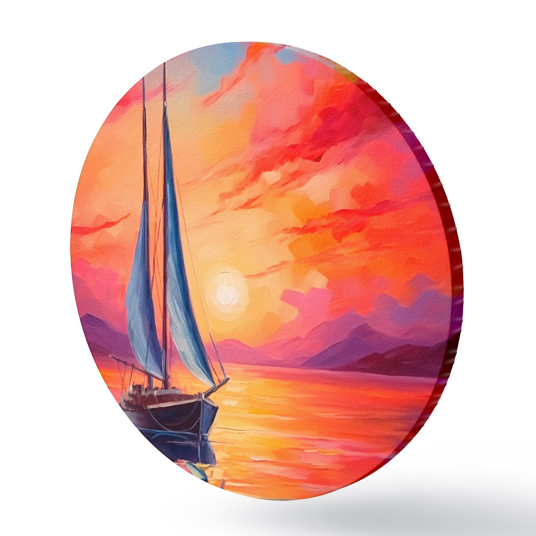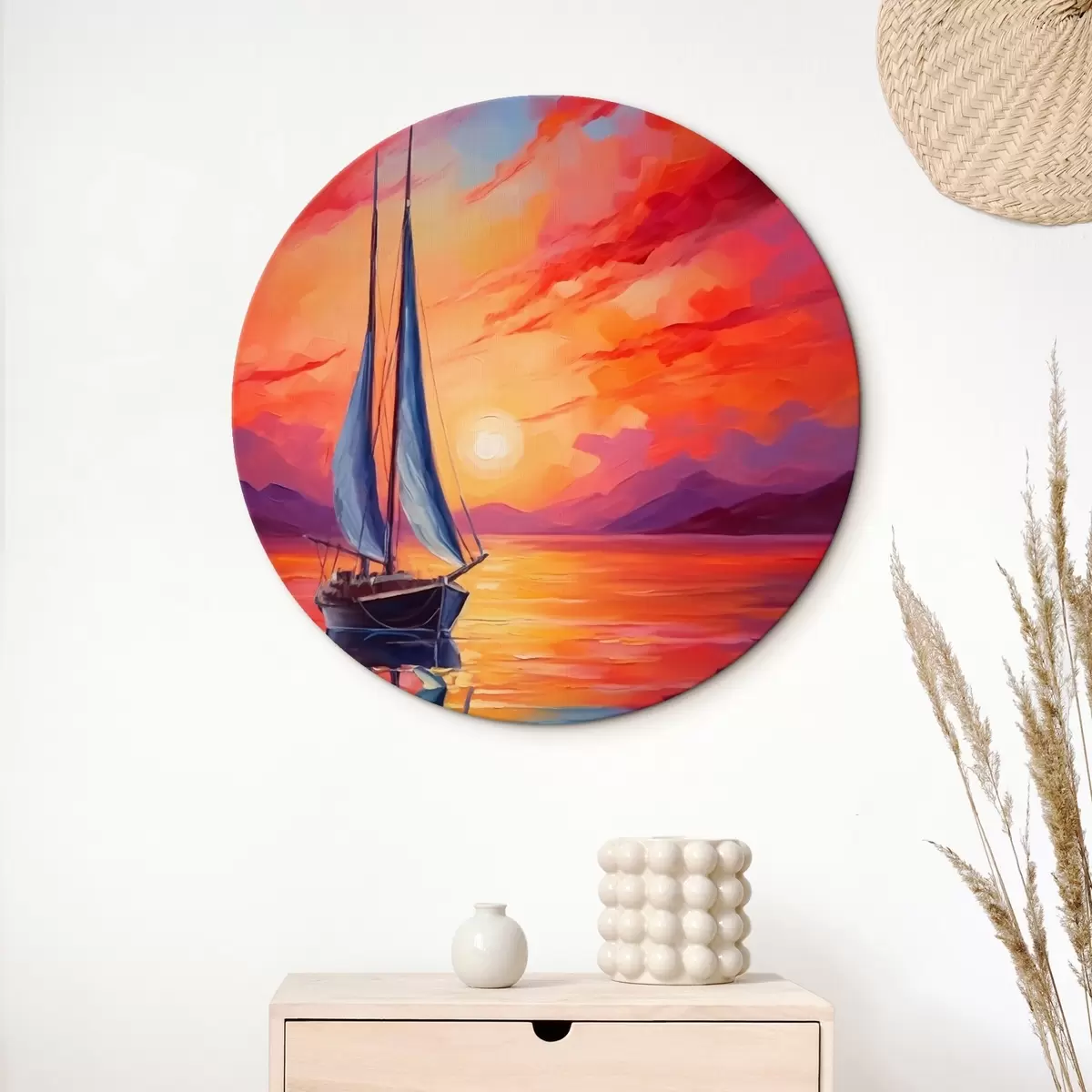Quadri rotondi Barca a vela sullo sfondo di un tramonto luminoso r42151