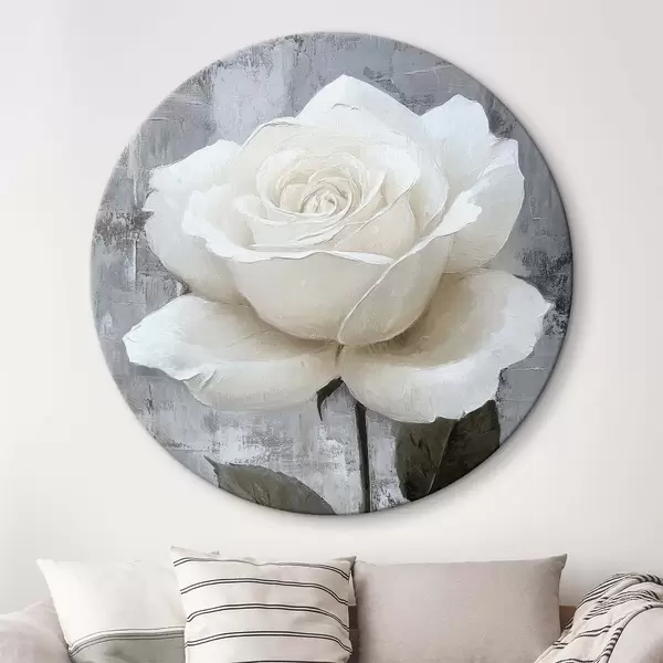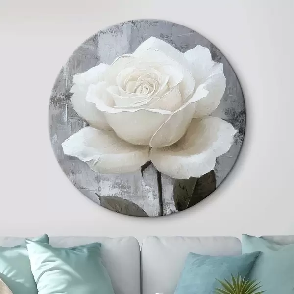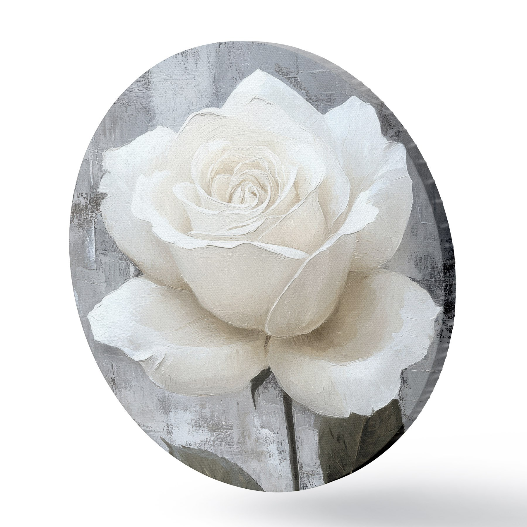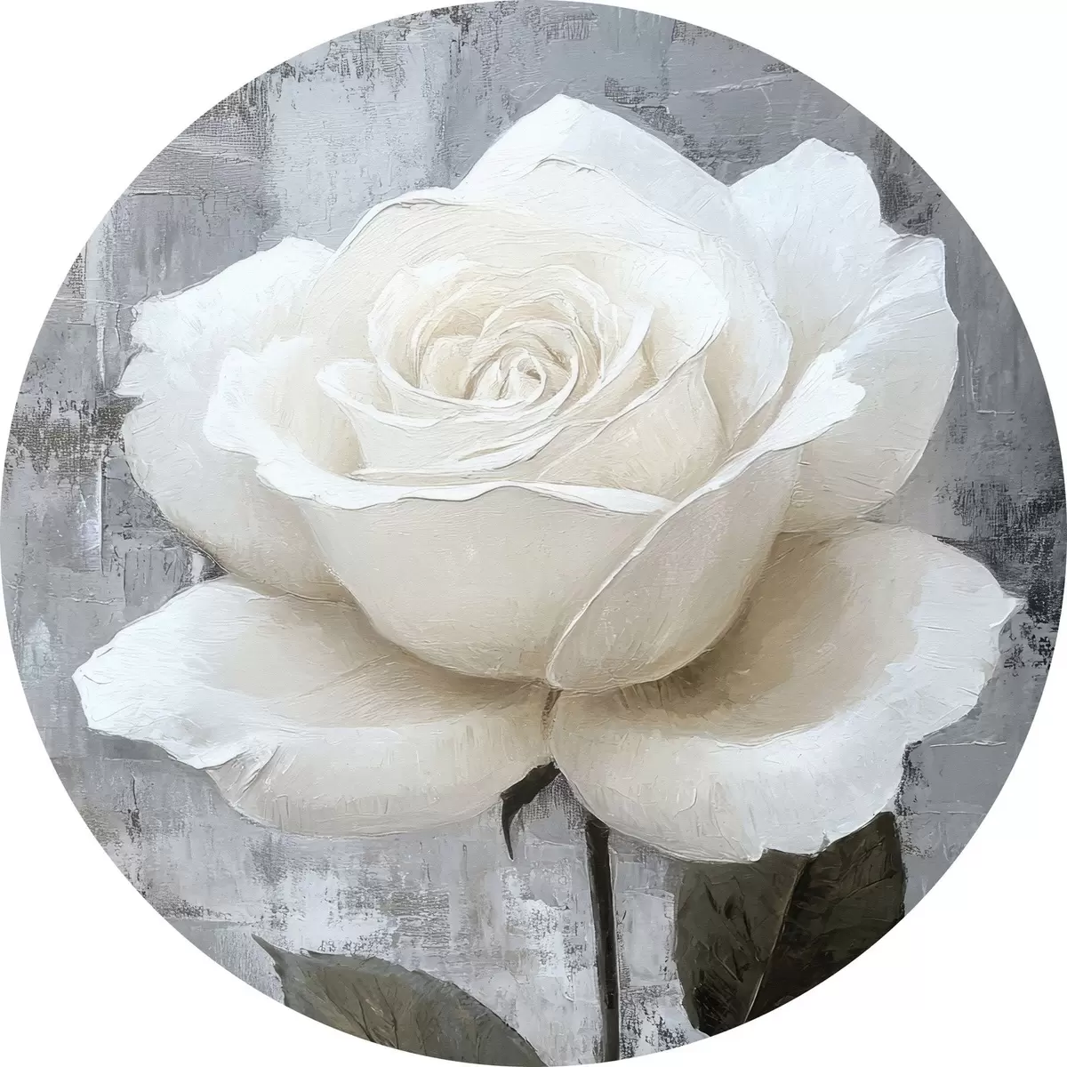 Quadri rotondi Rosa bianca disegnata a mano su sfondo di cemento r42185