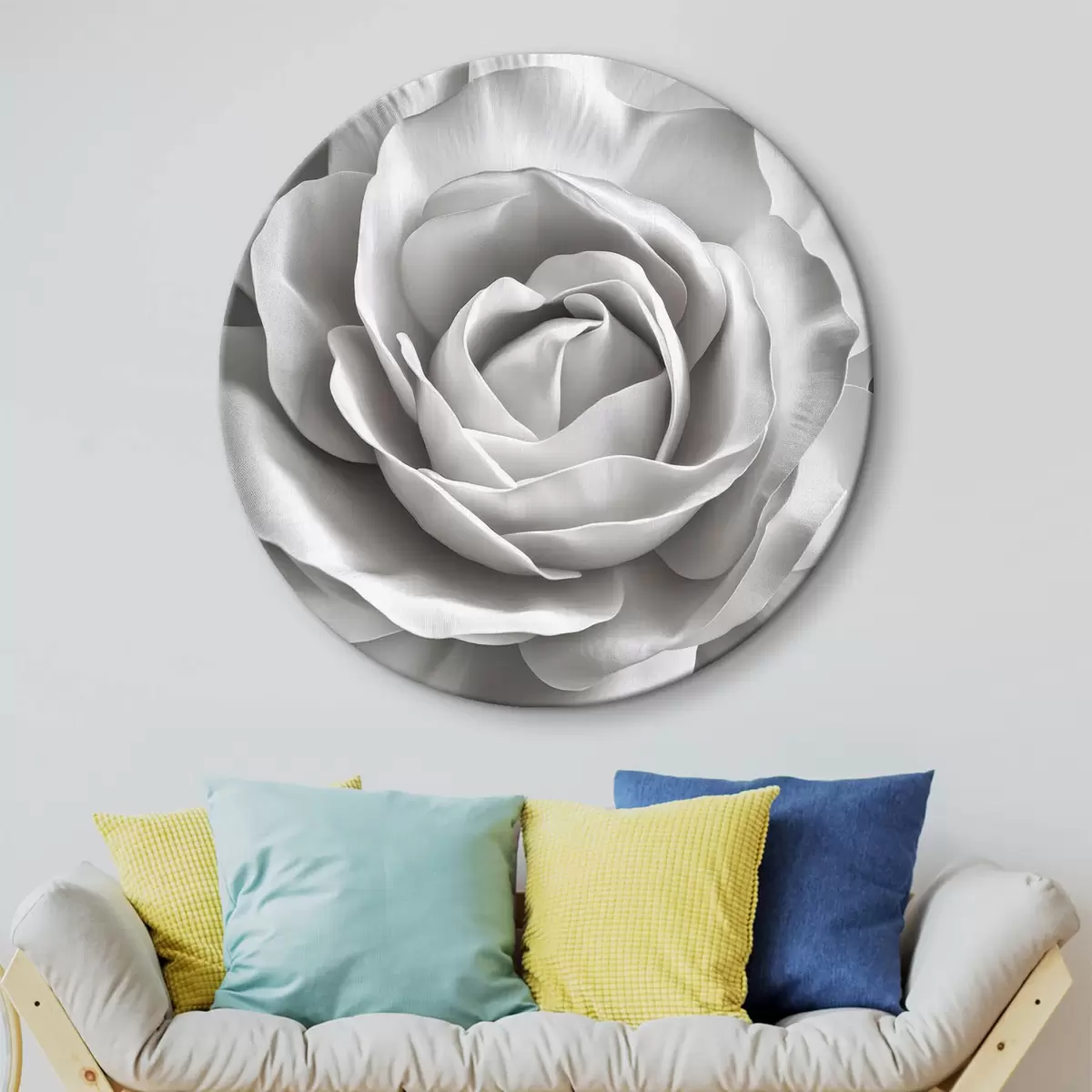 Quadri rotondi Grande rosa bianca e nera r42186