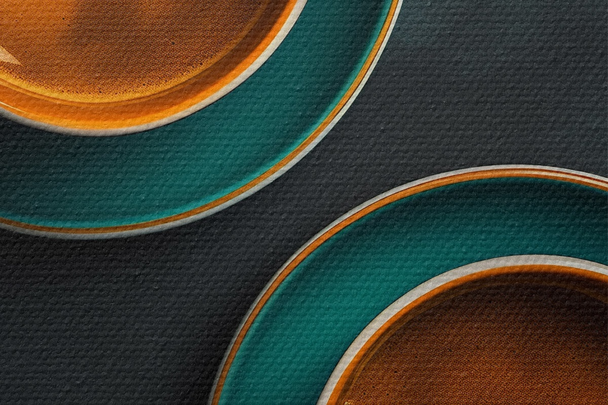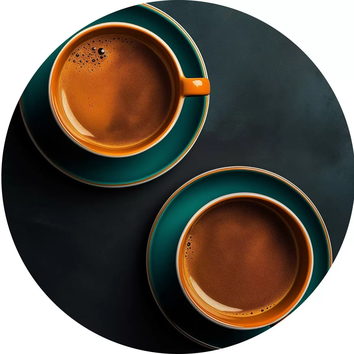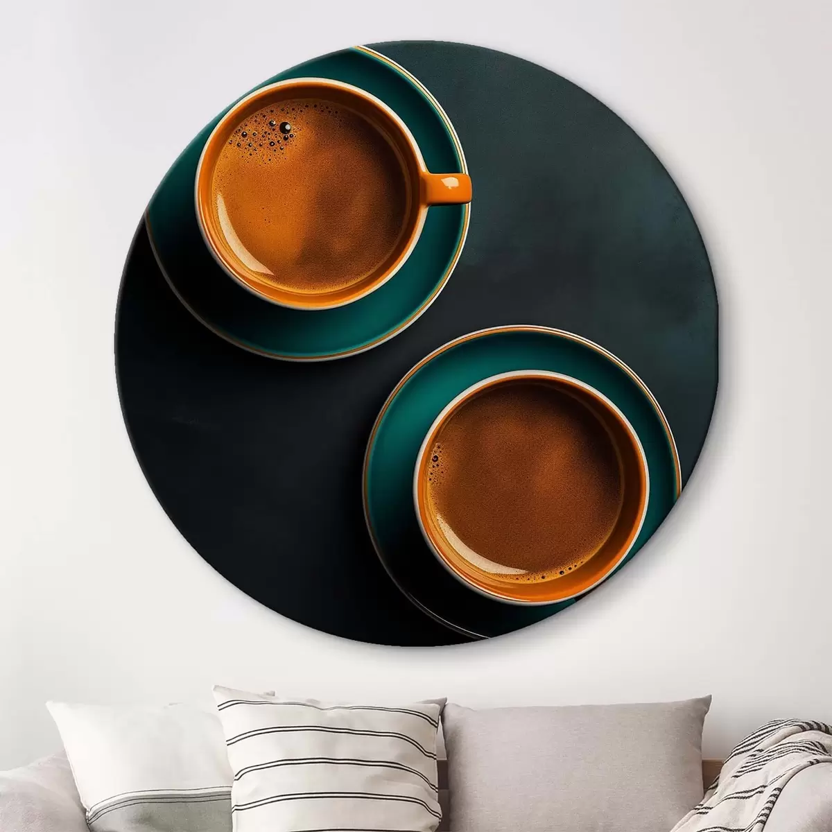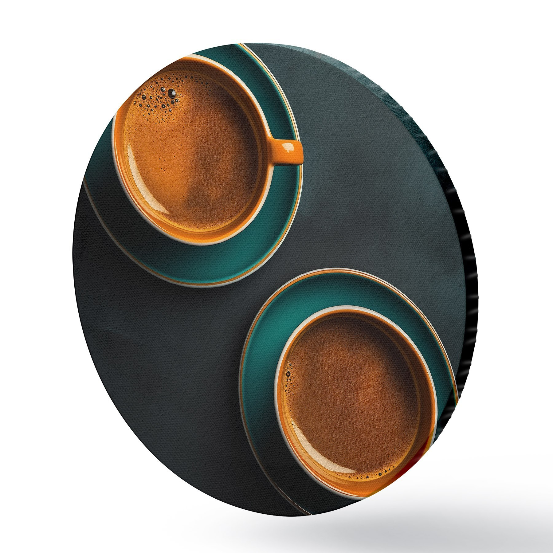 Quadri rotondi Due tazze di caffè su sfondo scuro r42190